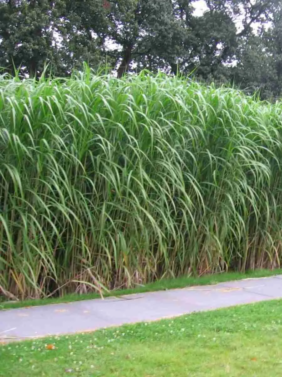 Мискантус гигантский — величественное травянистое растение семейства злаковых, поражающее своей мощью и благородством облика. Стройные стебли высотой до трёх метров устремляются вверх подобно колоннам древнего храма, увенчанные пышной метёлкой соцветий, переливающихся от серебристо-белого до золотисто-розового оттенка осенью. Листья длинные, узколанцетные, ярко-зелёные летом и приобретающие бронзово-жёлтый оттенок перед зимним покоем, слегка шероховатые сверху и гладко-восковые снизу, придают растению особую декоративность даже вне периода цветения. Корневище горизонтальное, быстро разрастающееся, способствующее энергичному распространению культуры на плодородных почвах умеренного климата. Цветёт мискантус поздно, в сентябре-октябре, когда его воздушные кисти словно парят над садовыми композициями, создавая иллюзию лёгкости и воздушности среди осеннего пейзажа.