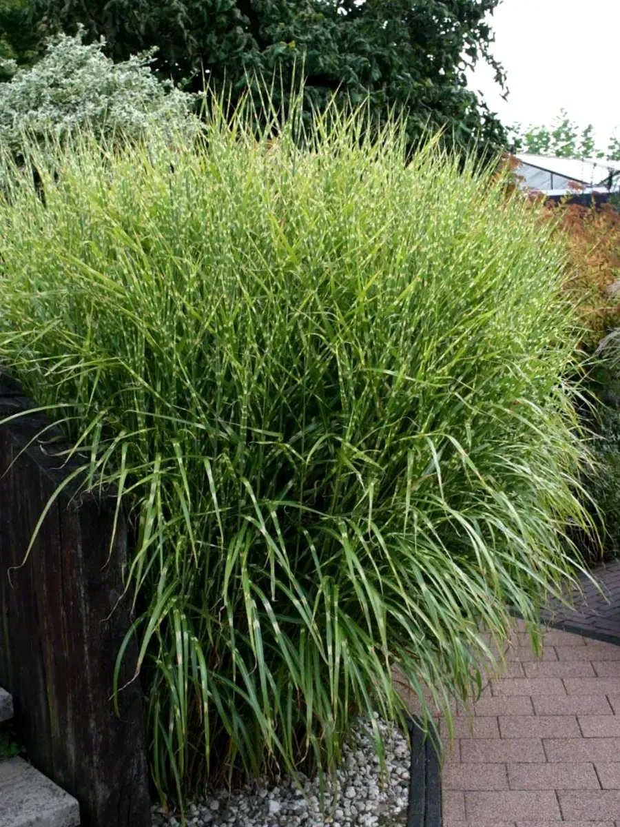 Мискантус китайский 'Strictus' — элегантная декоративная трава, покоряющая сердца садоводов своей утончённой красотой и благородством облика. Высокорослое растение достигает двух метров высоты, формируя стройную вертикальную композицию благодаря узким линейным листьям насыщенного зелёного цвета с чёткими продольными белыми полосами, придающими особую графичность и изысканность внешнему виду. Листья слегка волнистые, тонкие и гибкие, трепещут от малейшего дуновения ветра, создавая иллюзию живого движения и подчёркивая воздушность композиции. Цветёт мискантус поздним летом пышной метёлкой кремово-розовых соцветий, возвышающихся над лиственной массой подобно нежному облачку, постепенно приобретающих серебристо-серый оттенок осенью и сохраняющих свою привлекательность до наступления зимы. Растение предпочитает солнечные места, хорошо дренированные почвы и умеренный полив, прекрасно адаптируясь к различным климатическим условиям и становясь украшением любого сада своим величественным видом и способностью создавать атмосферу спокойствия и гармонии.