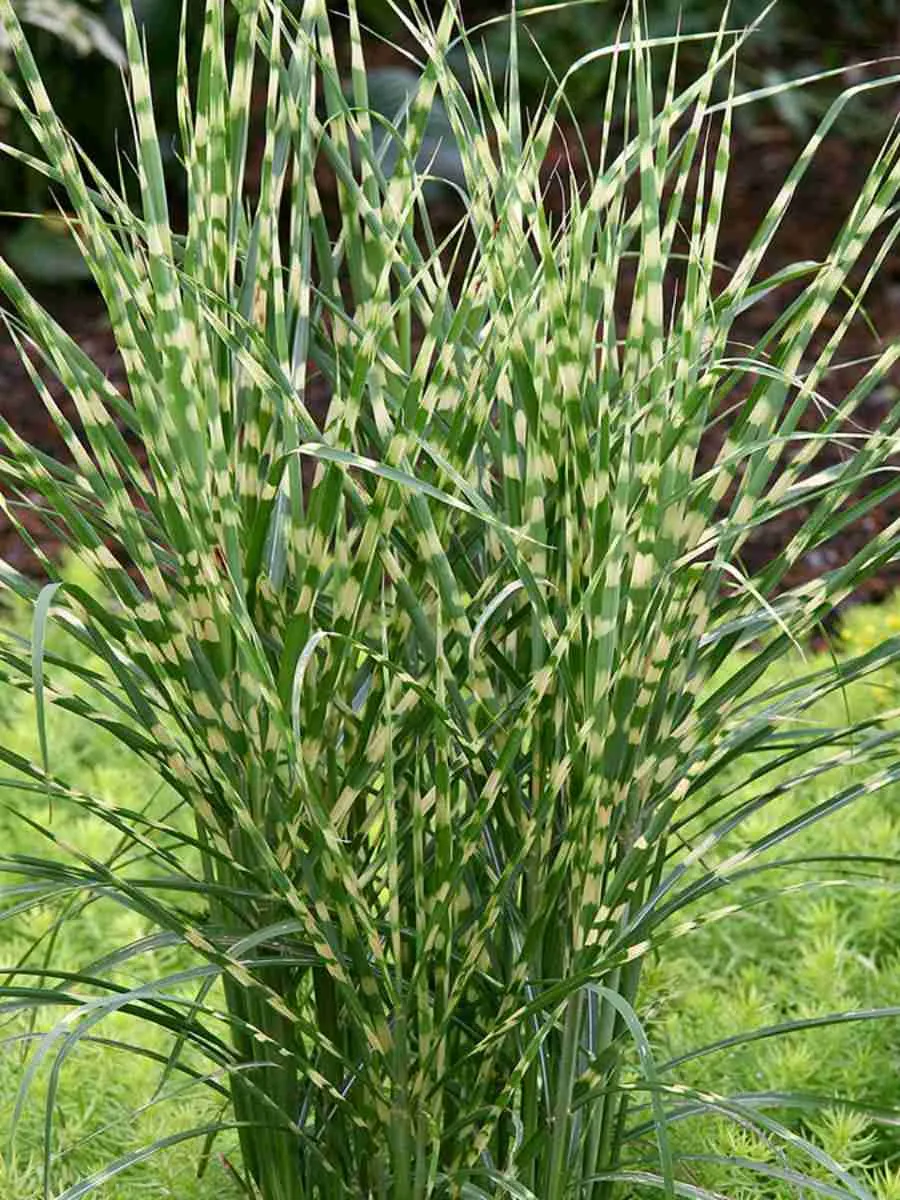 Мискантус китайский Zebrinus — изысканное декоративное растение семейства злаковых, покоряющее сердца садоводов своей элегантностью и утончённостью. Высокорослый многолетник достигает полутора-двух метров высоты, формируя пышную куртинку стройных стеблей, увенчанных узкими листьями изумрудной окраски с поперечными золотисто-жёлтыми полосами, словно нанесёнными кистью художника. Листья слегка волнистые, шелковистые на ощупь, придают растению особую воздушность и лёгкость. Осенью листья приобретают нежные оттенки оранжевого и бронзового цветов, создавая живописную игру красок. Цветёт мискантус поздним летом и осенью, выбрасывая длинные пушистые метёлки кремово-розоватого оттенка, возвышающиеся над листвой подобно перьям райской птицы. Эти соцветия долго сохраняют свою привлекательность даже после высыхания, украшая сад до самой зимы. Растение неприхотливо, предпочитает солнечные места и плодородные почвы, устойчиво к засухе и морозоустойчиво, прекрасно подходит для одиночных посадок, миксбордеров и живых изгородей, привнося в ландшафт нотки экзотики и благородства.