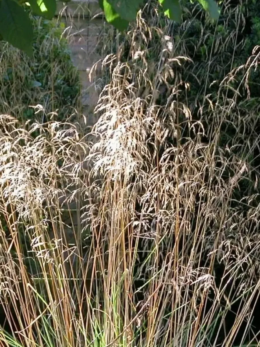 Щучка дернистая сорта *Bronzeschleier* представляет собой элегантную травянистую многолетнюю культуру, формирующую плотные живописные куртины высотой до полуметра. Её тонкие, узколинейные листья окрашены в благородный бронзово-зелёный оттенок, переливающийся золотистыми бликами на солнце. Листья слегка волнистые, придающие растению воздушность и лёгкость. Цветёт щучка мелкими невзрачными цветами, собранными в колосовидные соцветия, однако декоративная ценность культуры заключается именно в её листве. Растение отличается высокой устойчивостью к неблагоприятным условиям среды, прекрасно переносит затенение и переувлажнение почвы, активно разрастаясь и создавая густые зелёные ковры даже на сложных участках сада. Благодаря своей неприхотливости и привлекательному внешнему виду, щучка широко используется ландшафтными дизайнерами для оформления тенистых уголков, берегов водоёмов и каменистых садов, где она становится настоящим украшением природы.