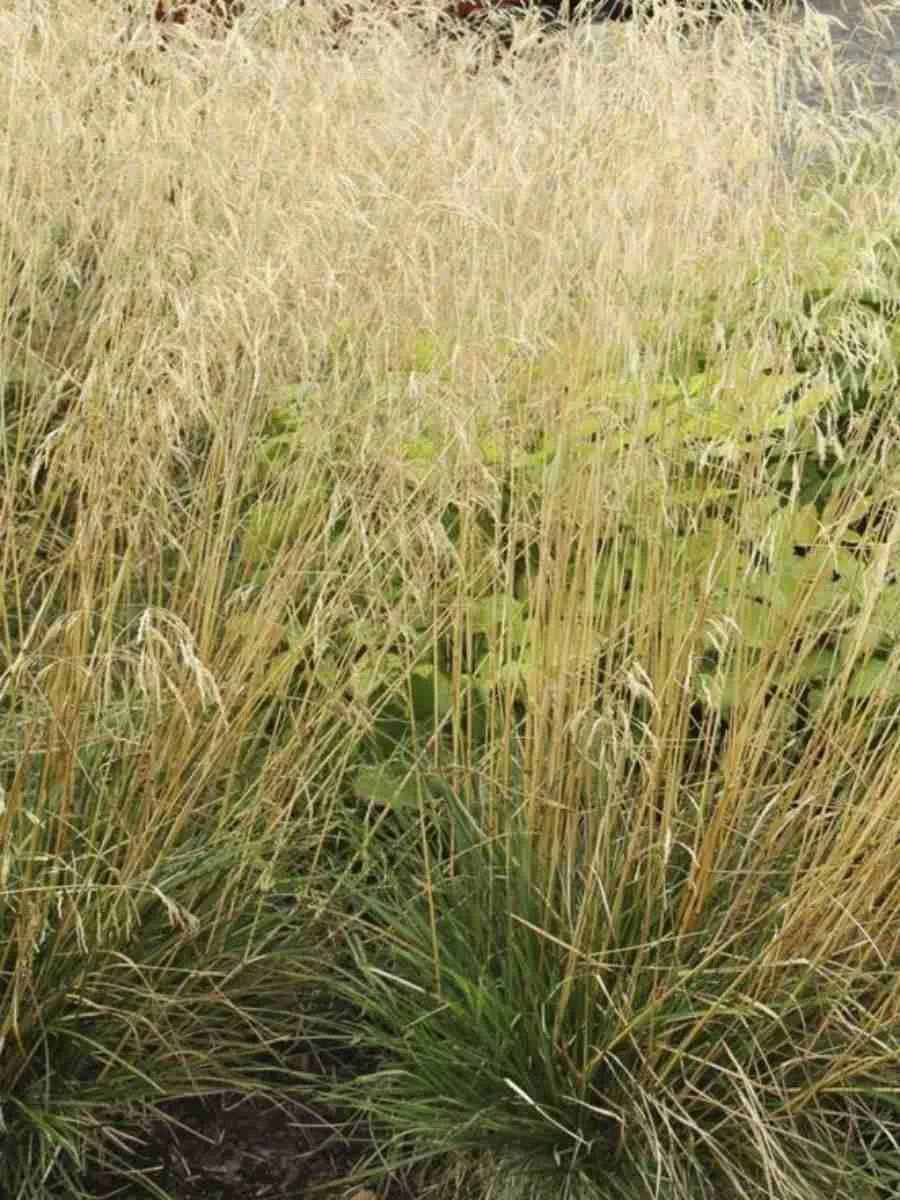 Щучка дернистая 'Goldschleier' (Deschampsia cespitosa 'Goldschleier') пленяет взор нежной грацией тонких зелёных стеблей, увенчанных воздушными метёлками соцветий, словно сотканных из золотистой дымки. Листья узколинейные, мягкие, слегка волнистые, образуют плотную куртинку высотой около полуметра, создавая живописный фон для ярких садовых композиций. Цветёт растение летом, покрываясь серебристо-золотистыми колосками, придающими ландшафту лёгкость и утончённость. Особенность сорта заключается в эффекте переливающейся окраски листвы, приобретающей осенью медово-жёлтые оттенки, подчёркивая природную гармонию осеннего сада. Растение предпочитает влажные почвы и полутень, прекрасно адаптируется к умеренному климату средней полосы России, украшая собой берега водоёмов, тенистые уголки садов и парковых зон.