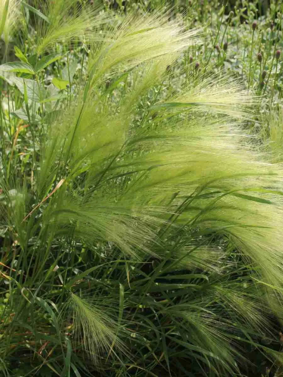 Ячмень гривастый (Hordeum jubatum), словно золотистый султан степей, пленяет взор своей необычной красотой и грациозностью. Это многолетнее травянистое растение высотой от 15 до 60 см обладает тонкими стеблями, покрытыми нежной шелковистой зеленью узких линейных листьев длиной около 8–15 см и шириной всего несколько миллиметров. Листья гладкие, слегка свернутые вдоль центральной жилки, придают растению особую воздушность и легкость. Цветёт ячмень гривастый мелкими колосками, собранными в роскошную метёлку длиной до 15 см, состоящую из множества тонких остей, достигающих порой длины вдвое большей самой метелки. Эти длинные серебристо-золотистые ости напоминают струящиеся волосы или развевающиеся гривы лошадей, отчего растение получило своё поэтическое название. Распространён преимущественно в умеренных зонах Евразии и Северной Америки, предпочитая сухие каменистые почвы, склоны холмов и песчаные участки, где создаёт живописные группы и привлекает внимание своим необычным обликом даже среди суровых природных ландшафтов.