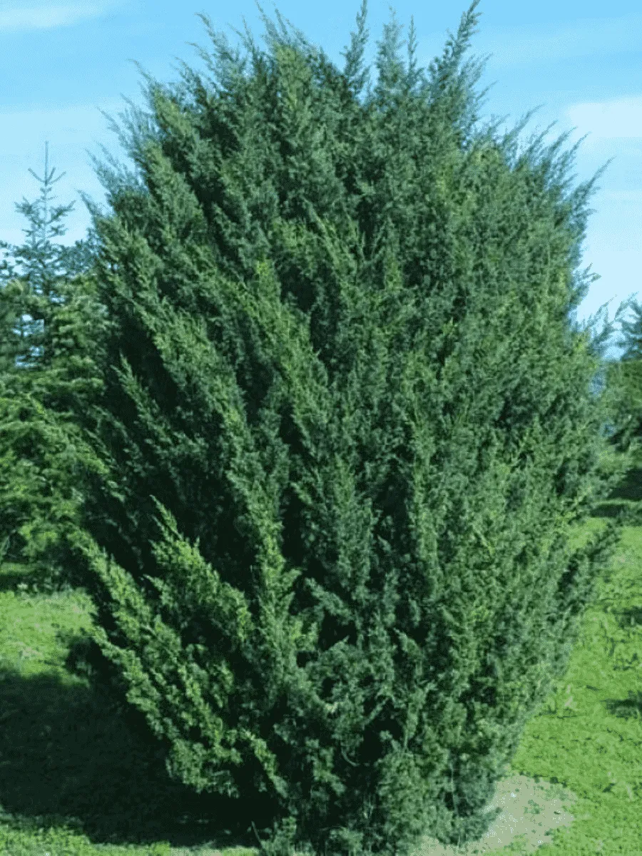 Можжевельник китайский сорта *Blaauw* представляет собой живописную колонновидную крону, устремлённую вверх стройной свечой высотой до трёх метров и шириной около полуметра. Его густые ветви покрыты плотной хвоей серебристо-голубого оттенка, придающей растению благородство и изысканность. Хвоя короткая, игловидная, слегка загнутая внутрь, создаёт впечатление бархатистости и мягкости. Растёт медленно, ежегодно прибавляя лишь несколько сантиметров, сохраняя компактность формы даже в зрелом возрасте. Цветение практически незаметно, поскольку растение относится к голосеменным и образует мелкие шишкоягоды, скрытые среди густой листвы. Предпочитает солнечные места, хорошо переносит засуху и морозы, устойчив к городским условиям и загрязнённому воздуху. Этот можжевельник станет прекрасным акцентом в любом саду благодаря своей элегантности и неприхотливости.