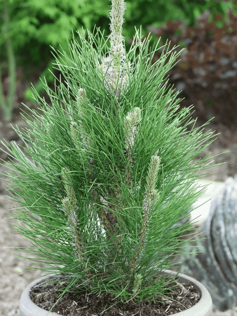 Сосна чёрная сорта *Green Rocket* представляет собой стройную пирамидальную красавицу с густым вертикальным силуэтом, устремлённым вверх подобно стреле, выпущенной прямо в небо. Её ветви расположены строго горизонтально, создавая чёткую геометрически правильную крону, словно вырезанную искусной рукой мастера. Иглы тёмно-зелёные, блестящие, длинные и тонкие, собраны в пучки по две штуки, придают дереву благородство и величие. Растёт медленно, ежегодно прибавляя всего несколько сантиметров, однако сохраняет свою декоративность долгие годы благодаря устойчивости к неблагоприятным условиям среды. Цветёт сосна невзрачно, формируя небольшие шишечки весной, после чего незаметно переходит в фазу покоя до следующего сезона. Этот сорт прекрасно подходит для небольших садов и городских ландшафтов, где ценится компактность и элегантность форм.