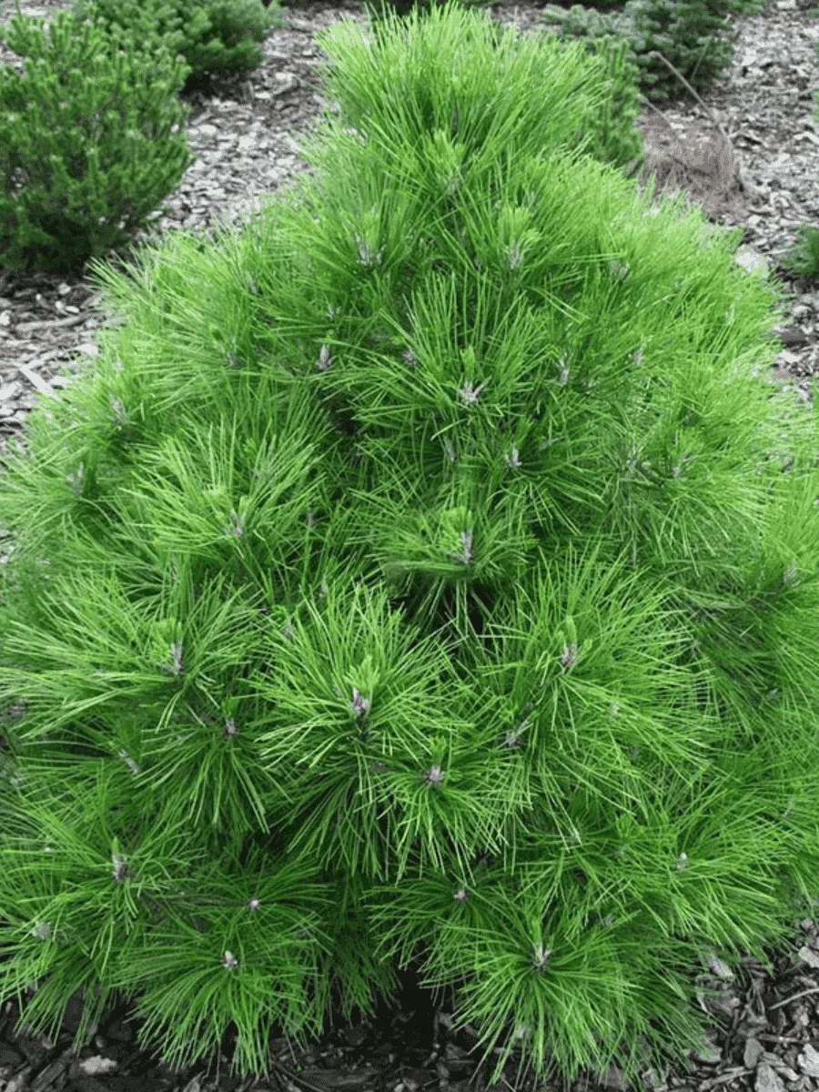 Сосна чёрная Nana — миниатюрное хвойное деревце, покорившее сердца садоводов своей изысканной декоративностью и компактной формой. Её густые ветви образуют аккуратную округлую крону, словно бережно уложенную рукой искусного мастера. Иглы тёмно-зелёные, короткие и плотные, придают растению благородство и строгость облика. Цветёт сосна скромно, почти незаметно, раскрывая мелкие шишечки лишь весной, когда природа оживает после зимнего сна. Растёт медленно, сохраняя свою привлекательность долгие годы, идеально вписываясь в каменистые сады, рокарии и альпийские горки. Этот карликовый представитель семейства Сосновых очаровывает своим спокойствием и величавостью, украшая собой самые утончённые уголки сада.