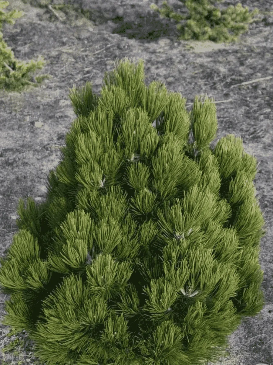 Сосна Гельдрейха *Compact Gem* представляет собой миниатюрную декоративную разновидность сосны, отличающуюся компактной формой кроны и медленным ростом. Её густые ветви образуют аккуратный округлый силуэт, который напоминает пушистый зелёный шарик, идеально подходящий для небольших садов и альпийских горок. Иглы короткие, тёмно-зелёные, блестящие, собраны в пучки по две штуки, создавая плотную фактуру хвои. Растёт медленно, прибавляя всего несколько сантиметров ежегодно, благодаря чему сохраняет свою привлекательную форму долгие годы. Цветение практически незаметно, поскольку шишки появляются редко и остаются небольшими, почти незаметными среди густой зелени игл. Благодаря своей неприхотливости и устойчивости к неблагоприятным условиям эта сосенка прекрасно приживается даже в суровых климатических зонах средней полосы России, украшая сады своим благородством и элегантностью круглый год.