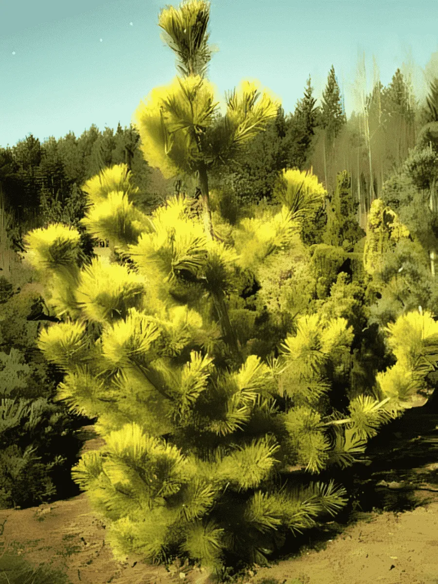 Сосна Тунберга сорта **«Ogon»** представляет собой компактную декоративную хвойную породу, отличающуюся изысканной золотисто-жёлтой хвоей, особенно ярко проявляющейся весной и осенью. Её ветви густо покрыты короткими иглами длиной около двух сантиметров, собранными в пучки по две штуки, придающие кроне живописную ажурность и воздушность. Растёт медленно, ежегодно прибавляя всего несколько сантиметров, достигая зрелости лишь через десятилетия. Форма дерева округлая, плотная, симметричная, идеально подходящая для небольших садов и каменистых композиций. Цветение сосны выражено слабо, мужские шишки малозаметны, женские же развиваются постепенно, превращаясь в миниатюрные коричневые шишечки, украшающие крону после созревания семян. Этот сорт предпочитает солнечные места, хорошо переносит морозы и засухоустойчив, благодаря чему широко используется в ландшафтном дизайне умеренных зон России и Европы.