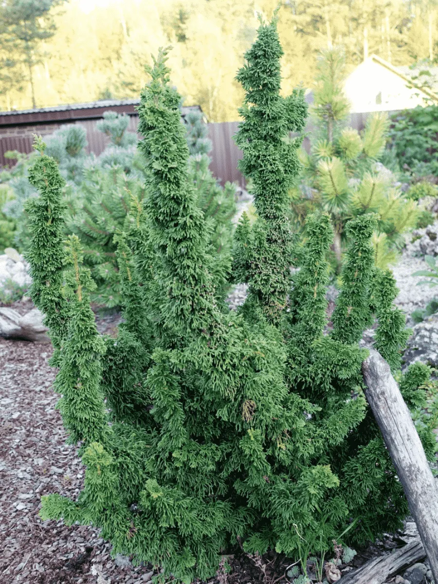 Туя западная сорта *Sagrada* представляет собой компактную пирамидальную крону, устремлённую вверх стройной колонной высотой до трёх метров, густо покрытую плотной тёмно-зелёной хвоей, переливающейся золотистыми оттенками на солнце. Листья мелкие чешуйчатые, плотно прижатые друг к другу, создавая впечатление бархатистого покрова, который сохраняет свою декоративность круглый год. Растёт медленно, ежегодно прибавляя всего несколько сантиметров, сохраняя аккуратную геометрически правильную форму даже без формировки. Цветение практически незаметно, поскольку шишки небольшие и малозаметные среди густой кроны. Предпочитает солнечные места, хорошо переносит полутень, устойчива к городским условиям, морозостойка и неприхотлива в уходе. Этот сорт идеально подходит для создания живых изгородей, солитерных посадок и композиций в садах и парках, где ценится её благородство и элегантность.