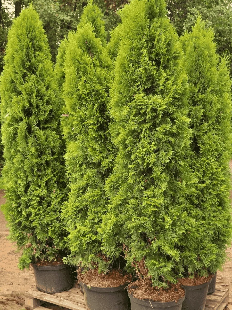 Туя западная 'Silver Smaragd' представляет собой стройную пирамидальную красавицу среди хвойных растений, достигающую высоты до трёх метров и обладающую плотной компактной кроной, словно выточенной искусным мастером. Её нежные чешуевидные листья образуют густое покрытие ветвей, создавая впечатление мягкого зелёного бархата, который весной украшается серебристым оттенком молодых приростов, придающим деревцу особую изысканность и благородство. Летом же хвоя приобретает насыщенный изумрудный оттенок, подчёркивая свежесть и жизненную силу растения. Цветёт эта миниатюрная лесная принцесса скромно, почти незаметно, радуя лишь тонким ароматом крошечных шишечек, едва заметных глазу. Растёт медленно, предпочитая солнечные места и плодородные почвы, легко адаптируясь даже к городским условиям, становясь украшением садов и парков, где её элегантность и утончённость неизменно привлекают восхищённые взгляды ценителей прекрасного.