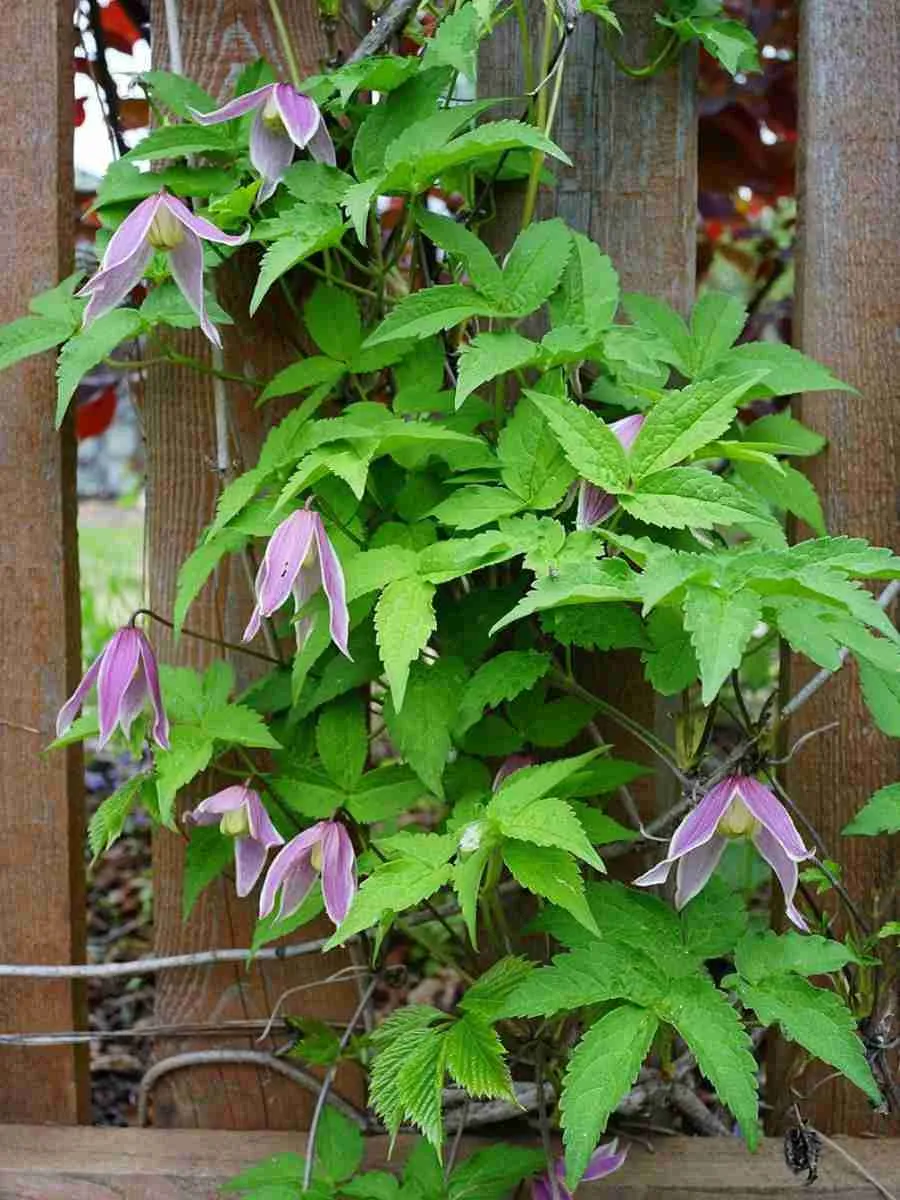 Клематис Columella очаровывает своей утончённой красотой и нежностью форм. Это элегантная лиана с гибкими побегами, достигающими до двух метров длины, легко обвивающая опоры и стремящаяся вверх, словно тянущаяся к свету. Листья тёмно-зелёные, блестящие, рассечённые на три овальных сегмента с волнистыми краями, придающие растению особую воздушность и лёгкость. Цветки крупные, диаметром около восьми сантиметров, собраны в рыхлые кисти, раскрываются постепенно, создавая эффект непрерывности цветения. Лепестков пять-шесть, нежно-розового оттенка с едва заметной серебристо-белой каймой, плавно переходящей в золотисто-жёлтые тычинки, собранные в центре цветка. Бутоны появляются уже в конце весны и радуют глаз вплоть до начала осени, наполняя сад изысканным ароматом и придавая ему особое очарование.