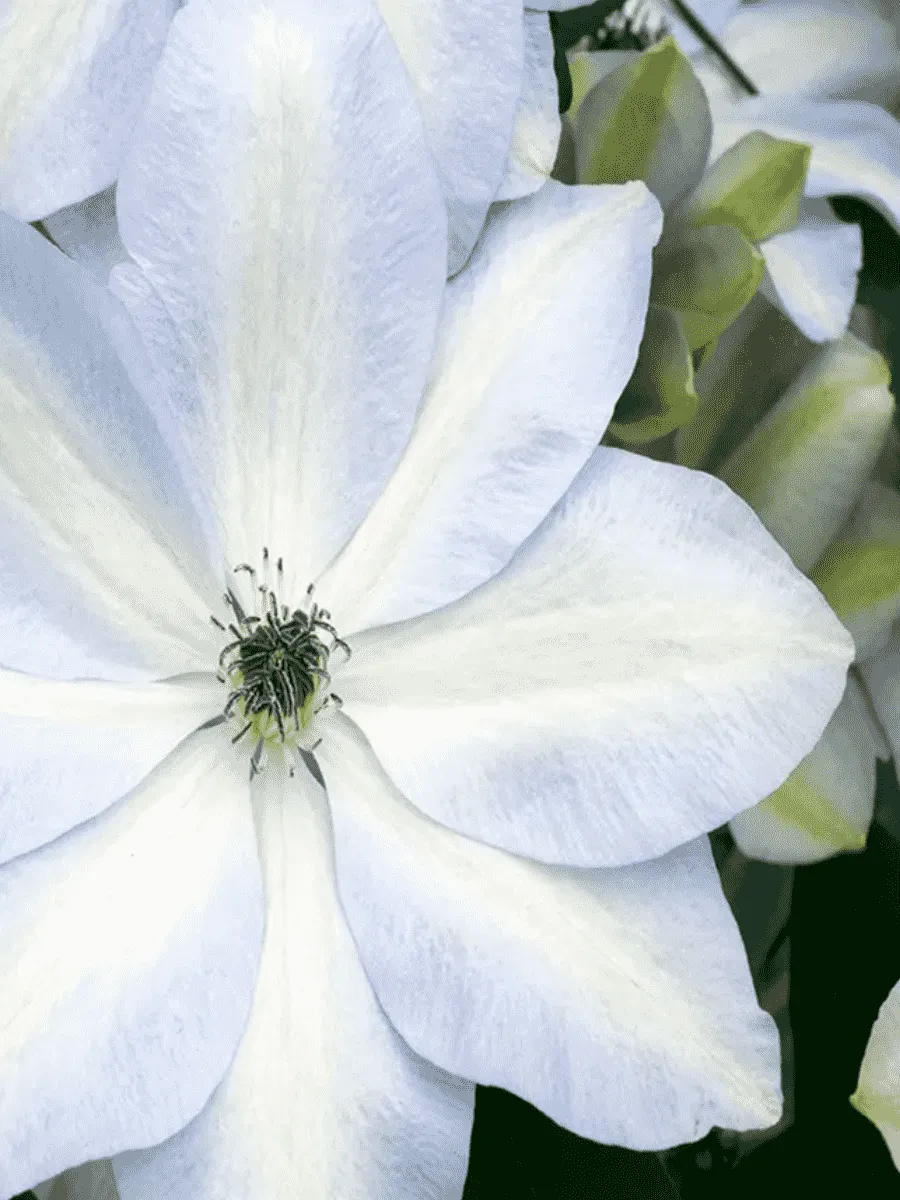 Клематис гибридный Иван Ольссон (Ivan Olsson) — роскошная лиана с элегантной архитектурой стеблей и пышным каскадом крупных цветков, покоряющих своей утончённой красотой. Листья тёмно-зелёные, блестящие, рассечённые на несколько овальных долей, придают растению благородную строгость и свежесть облика. Цветки крупные, диаметром до 15 см, раскрываются густо-фиолетовыми лепестками с нежным пурпурным отливом, украшенными золотистыми тычинками, словно драгоценности, сверкающие среди зелени. Бутоны появляются обильно, начиная с июня и продолжаясь вплоть до первых заморозков, создавая эффект непрерывного цветения. Гибрид отличается быстрым ростом, легко взбираясь вверх по шпалерам и решёткам, формируя живописные зелёные стены и арочные композиции. Этот сорт прекрасно адаптируется к различным условиям выращивания, радуя садоводов своим великолепием долгие годы.