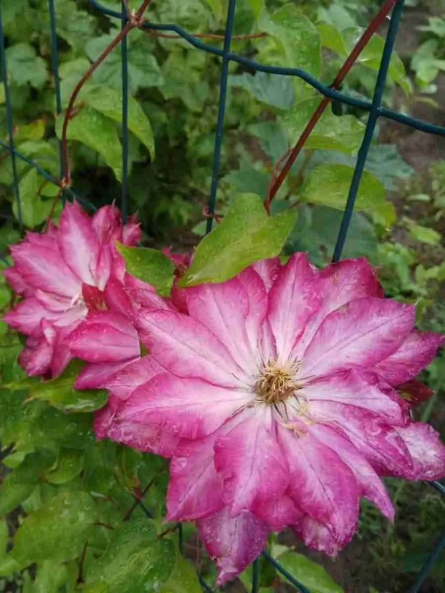 Клематис гибридный сорта *Kaen* пленяет взор роскошной зеленью и пышностью цветения. Его крупные сердцевидные листья насыщенного изумрудного оттенка образуют густое покрытие, подчеркивая элегантность каждого стебля. Цветки поражают своей величиной и изысканностью форм: широкие лепестки глубокого винно-красного цвета плавно переходят в бархатистый центр, украшенный золотистыми тычинками. Бутоны раскрываются постепенно, демонстрируя всю палитру оттенков от пурпурного до рубинового, создавая эффектную игру света и тени. Растение отличается энергичным ростом, быстро покрываясь густой массой листвы и цветов, превращая опоры и арки в живописные зелёные галереи. Этот сорт предпочитает солнечные места, отзывчиво реагируя на плодородие почвы и регулярный полив, радуя садоводов продолжительным периодом декоративности вплоть до поздней осени.