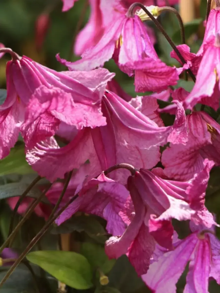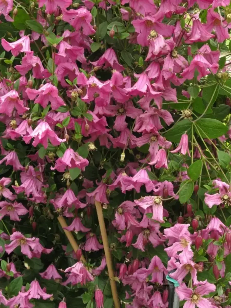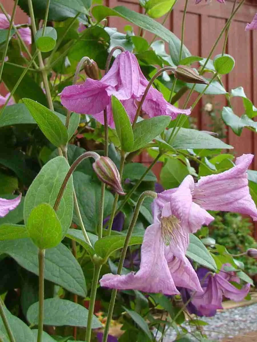 Клематис *Heather Nell Jessie* (часто называемый сокращённо *Heather Herschell*) пленяет взор роскошной кроной густых тёмно-зелёных блестящих листочков, собранных в тройчатые сложносоставные листья, придающие растению элегантную пышность и благородство облика. Цветки крупные, диаметром около десяти сантиметров, распускаются обильно и долго, начиная с конца июня до глубокой осени, украшая сад нежнейшими оттенками розового цвета с едва уловимым пурпурным отливом и золотистыми тычинками, словно сотканными из солнечных лучей. Стебли мощные, гибкие, легко цепляются за опоры благодаря тонким усикам, позволяя клематису уверенно подниматься вверх, достигая высоты трёх метров и превращаясь в живописную живую ширму или эффектное украшение беседок и пергол. Этот сорт отличается устойчивостью к болезням и неприхотливостью в уходе, прекрасно адаптируясь к различным условиям выращивания и радуя садоводов своей красотой долгие годы.