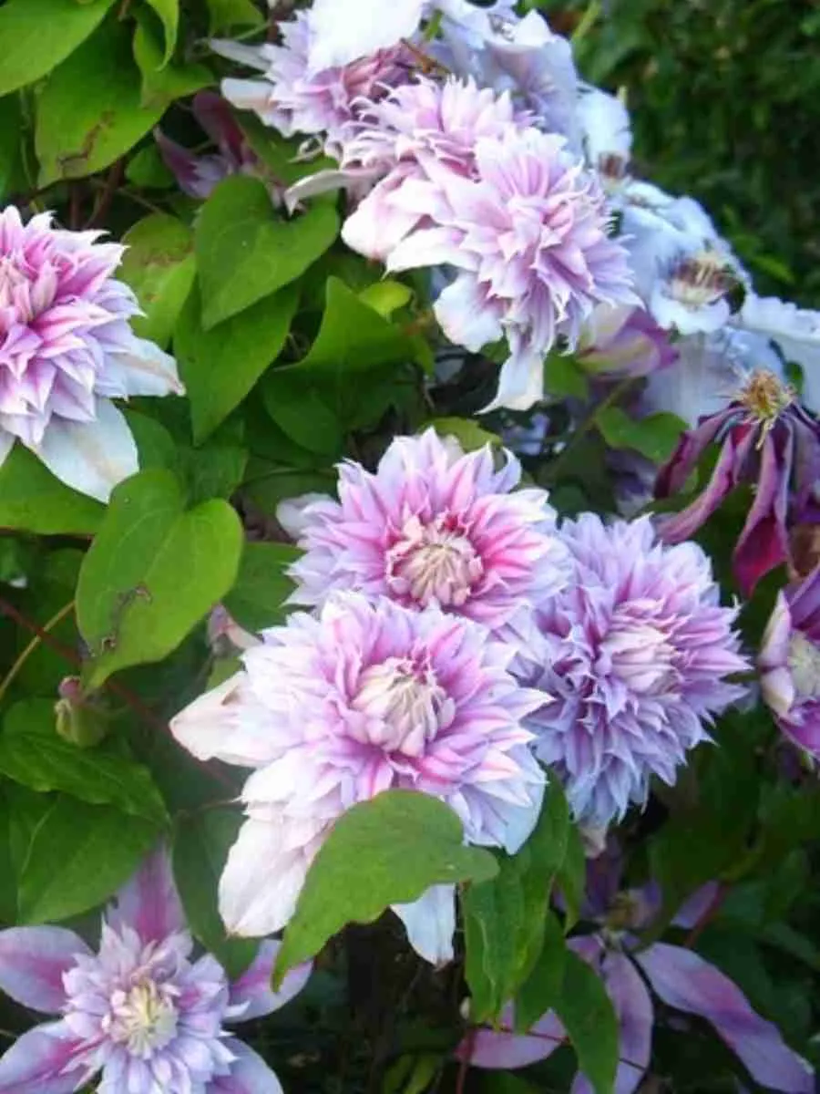 Клематис Джозефин (Clematis 'Josephine') пленяет взор нежностью и утончённостью своего облика. Это элегантная лиана с гибкими побегами, достигающая высоты до трёх метров, украшенная крупными сердцевидными листьями насыщенного зелёного цвета, слегка блестящими и гладкими на ощупь. Цветки крупные, диаметром около десяти сантиметров, распускаются в середине лета и радуют глаз вплоть до первых осенних заморозков. Лепестки нежно-розового оттенка плавно переходят в кремово-белый центр, создавая впечатление лёгкого воздушного облака, окутывающего растение. Сердце цветка украшают многочисленные тычинки золотисто-жёлтого тона, придающие особую изысканность композиции. Этот сорт предпочитает солнечные места, однако способен переносить полутень, демонстрируя свою неприхотливость и способность адаптироваться к различным условиям произрастания. Благодаря своей декоративности и простоте ухода клематис Джозефин широко используется в вертикальном озеленении садов и парков, где становится настоящим украшением любого уголка природы.