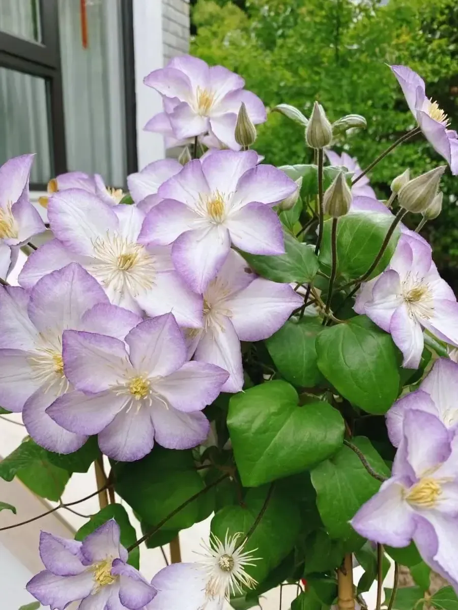 Клематис *Lucky Charm* пленяет взор роскошной зеленью и пышностью цветения. Его побеги длинные, гибкие, легко цепляются за опоры благодаря тонким усикам, формируя живописную зелёную завесу. Листья перистые, состоят из нескольких овальных листочков с зубчатыми краями, окрашены в насыщенный тёмно-зелёный оттенок, придающий растению свежесть и благородство облика. Цветки крупные, диаметром около десяти сантиметров, распускаются обильно, покрывая растение густым ковром ярких красок. Лепестков пять-шесть, широкие, бархатистые, нежно-розового цвета с лёгким пурпурным оттенком, который усиливается ближе к центру цветка, создавая эффект градиента. Сердцевина украшена многочисленными тычинками золотисто-жёлтого оттенка, контрастирующими с лепестками и подчёркивающими изысканность соцветий. Период цветения продолжительный, начинается в июне и длится до конца лета, наполняя сад нежностью и очарованием. Растёт быстро, неприхотлив, предпочитает солнечные места и плодородные почвы, прекрасно адаптируется к различным условиям выращивания, радуя садоводов своей красотой и декоративностью долгие годы.