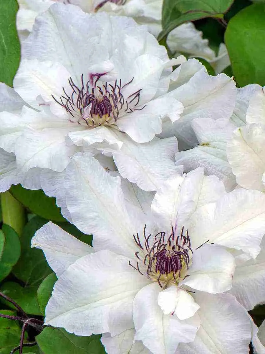 Клематис Мария Качиньска (Clematis 'Maria Kaczyńska') пленяет взор крупными махровыми цветами нежной кремово-белой окраски, украшенными золотистыми тычинками, словно сотканными из солнечных лучей. Листья растения рассечённые, тёмно-зелёные, глянцевые, придают облику особую элегантность и благородство. Этот сорт отличается мощным ростом, быстро покрываясь густой массой лиан, достигающих высоты до трёх метров, превращающих опоры и арки в живописные зелёные галереи. Цветёт обильно и продолжительно, начиная с июня и заканчивая сентябрём, наполняя сад изысканным ароматом и очарованием старинных садов Европы.