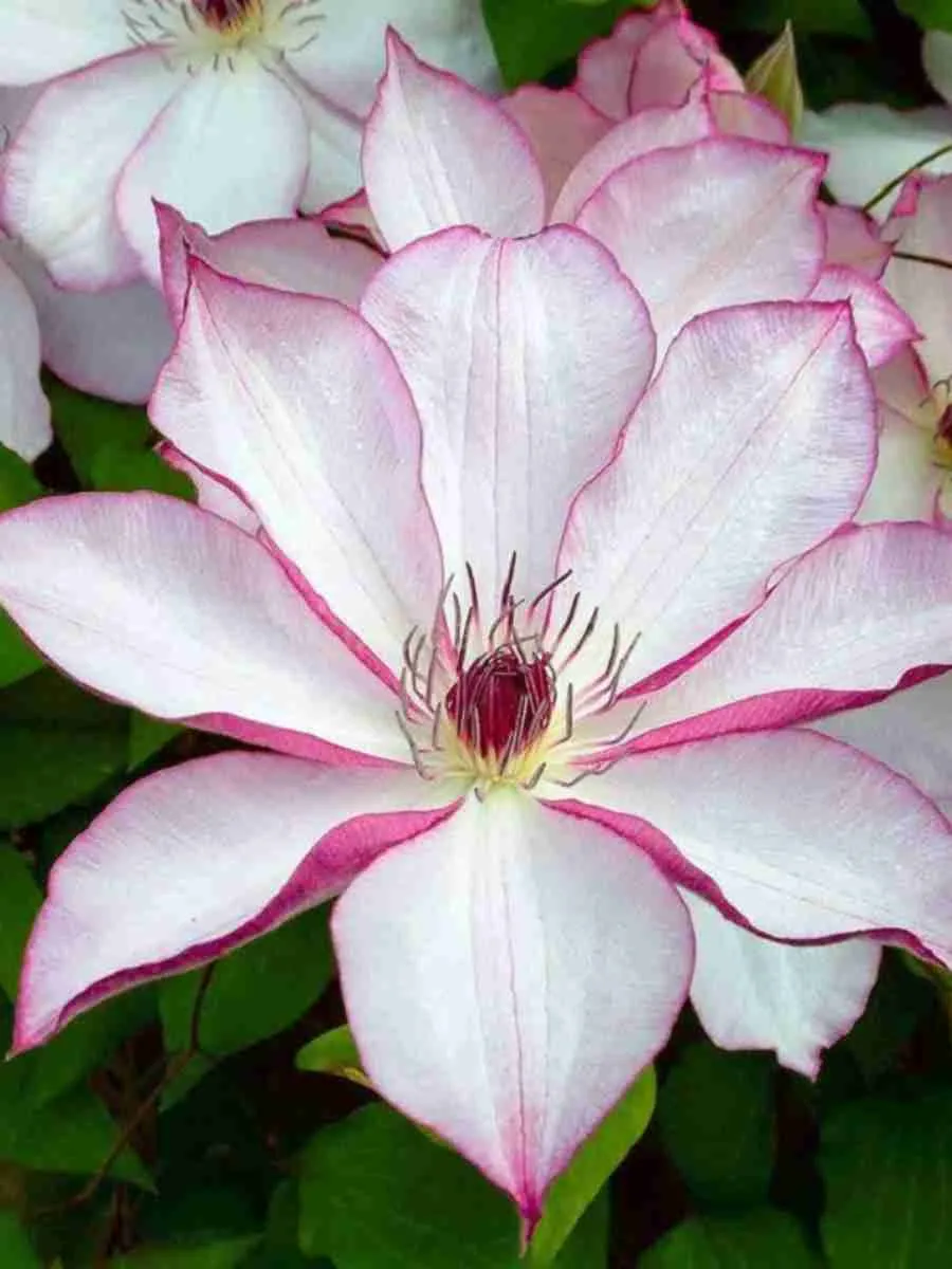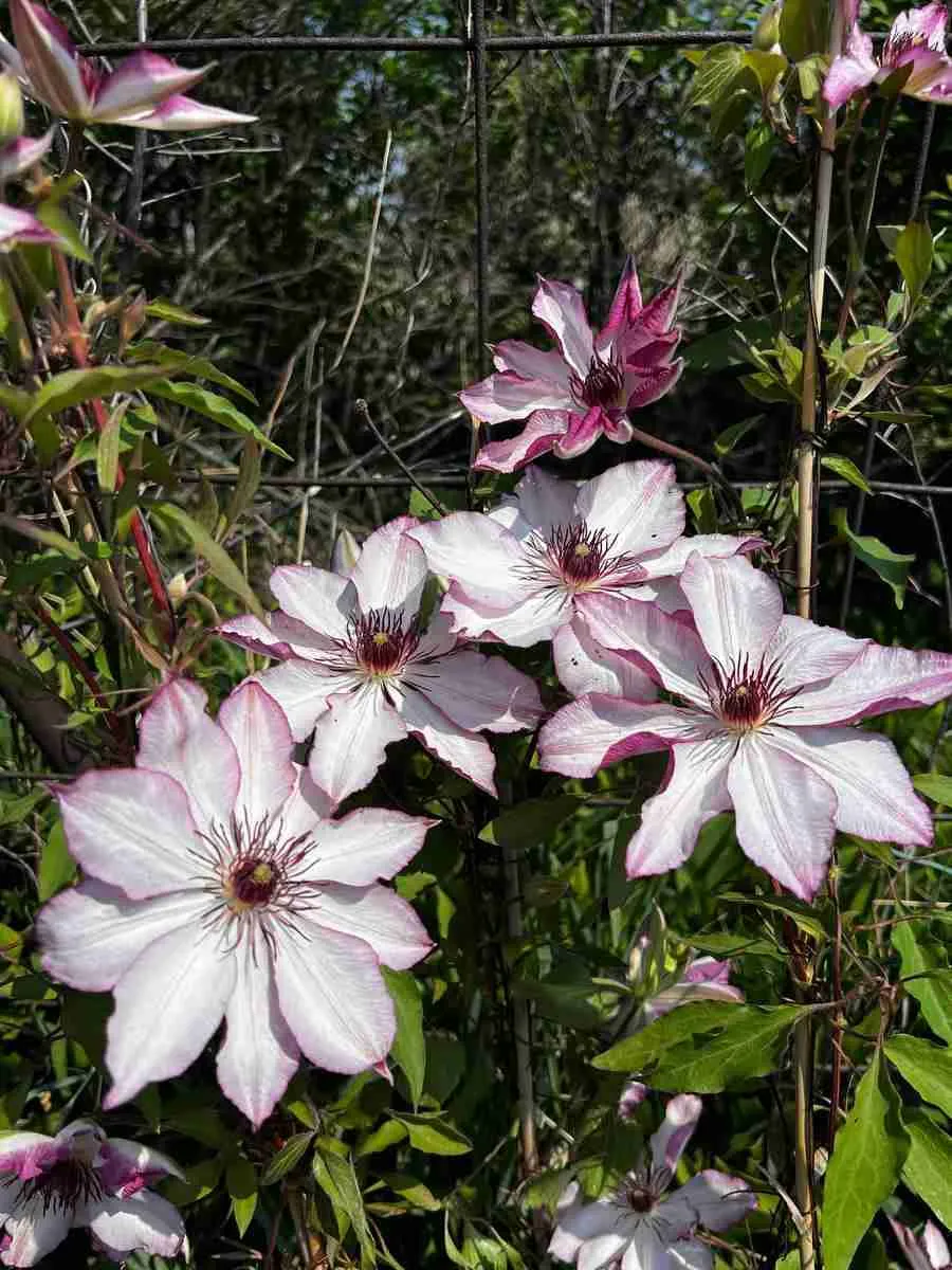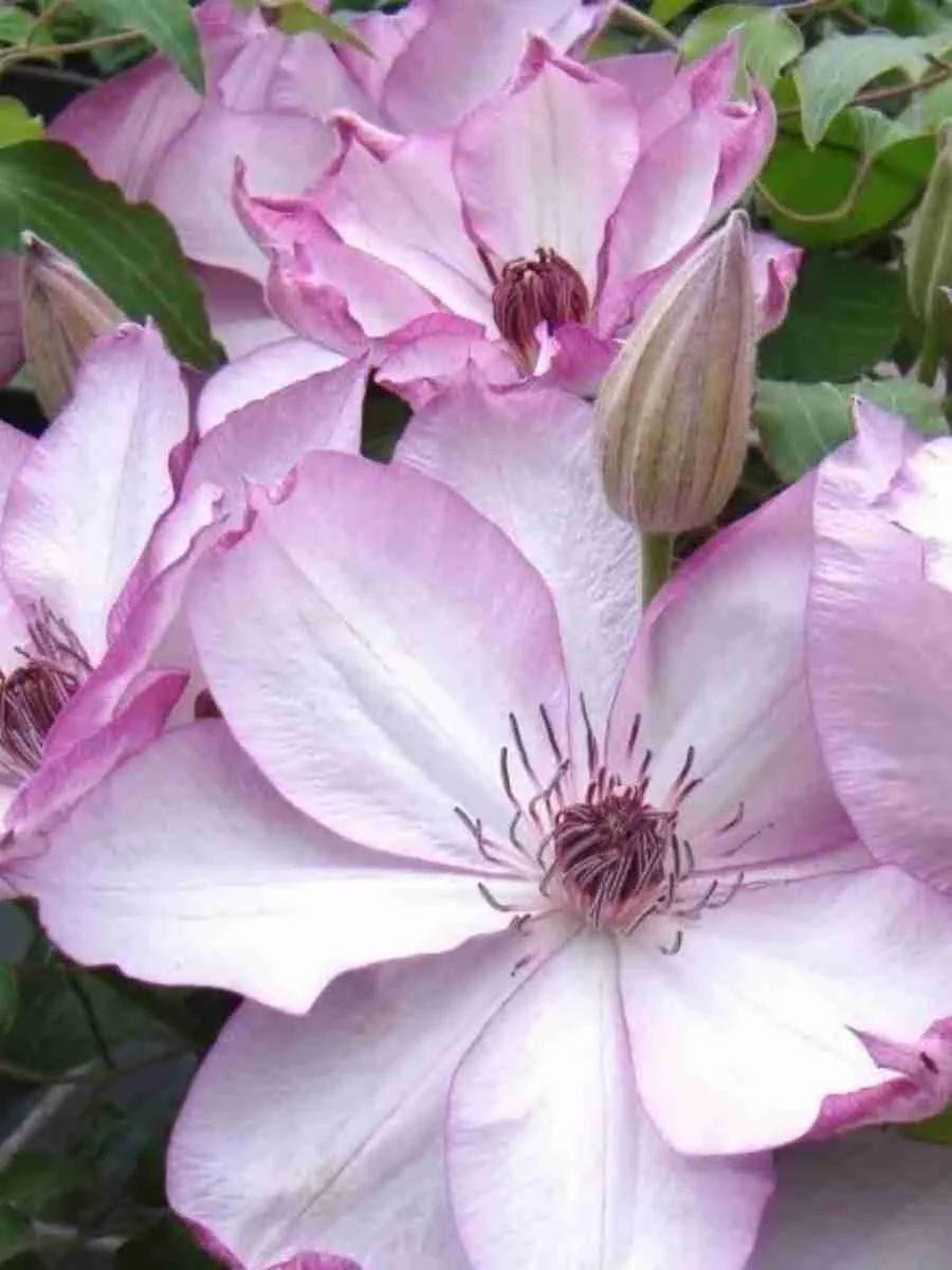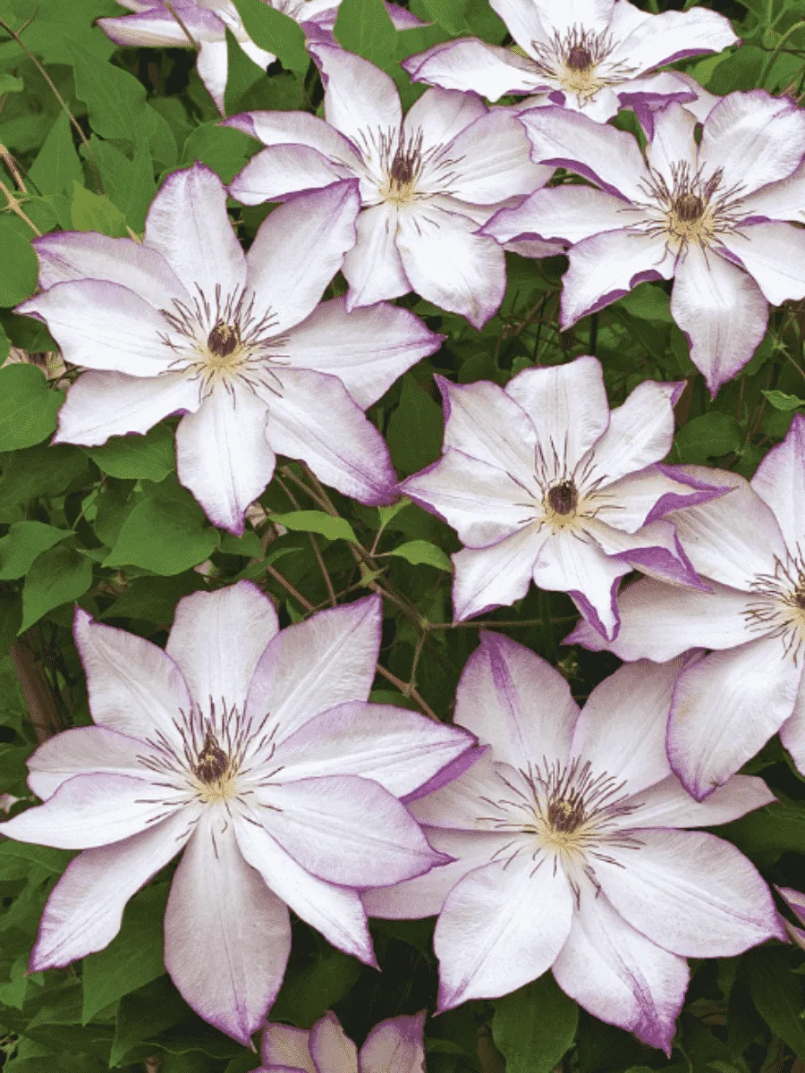 Клематис сорта Омоширо (Omoshiro), словно живописная кисть мастера, рисует нежную картину весны и лета своими крупными цветами, распускающимися густым каскадом на фоне темно-зелёной листвы. Листья растения имеют чёткую рассечённую структуру, создавая ажурную мозаику теней и света, украшая собой любой садовый уголок. Цветки раскрываются постепенно, демонстрируя свою изысканность и утончённость: крупные, диаметром до десяти сантиметров, нежно-белые лепестки плавно переходят от кремового оттенка к едва заметному розовому краю, подчёркивая природную гармонию форм и красок. Этот клематис отличается быстрым ростом и способностью легко адаптироваться к различным условиям произрастания, покоряя садоводов своей неприхотливостью и декоративностью. Его побеги устремляются вверх, цепляясь за опоры тонкими усиками, превращаясь в живое украшение беседок, арок и стен зданий. Сорт Омоширо очаровывает своим элегантным обликом и дарит радость созерцания каждому, кто остановит взгляд на этой удивительной красоте природы.