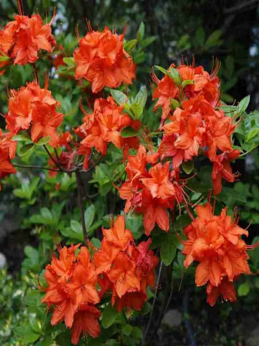 Азалия Fireball — роскошная представительница рододендронов, поражающая воображение своей изысканной красотой и пышностью цветения. Это компактный кустарник высотой до одного метра с густой кроной, состоящей из мелких овальных листочков насыщенного тёмно-зелёного цвета, глянцевых и слегка кожистых на ощупь. Весной растение покрывается множеством крупных цветков диаметром около пяти сантиметров, собранных в густые соцветия, придающие кусту праздничный и торжественный облик. Лепестки цветов имеют яркую огненно-красную окраску с лёгким оранжевым оттенком, создавая впечатление пламени, охватившего весь куст. Цветение продолжается долго, радуя глаз яркими красками даже после окончания весеннего сезона. Растёт азалия медленно, предпочитая полутень и влажные кислые почвы, распространена преимущественно в садах умеренных широт Европы и Северной Америки благодаря своему декоративному виду и неприхотливости в уходе.
