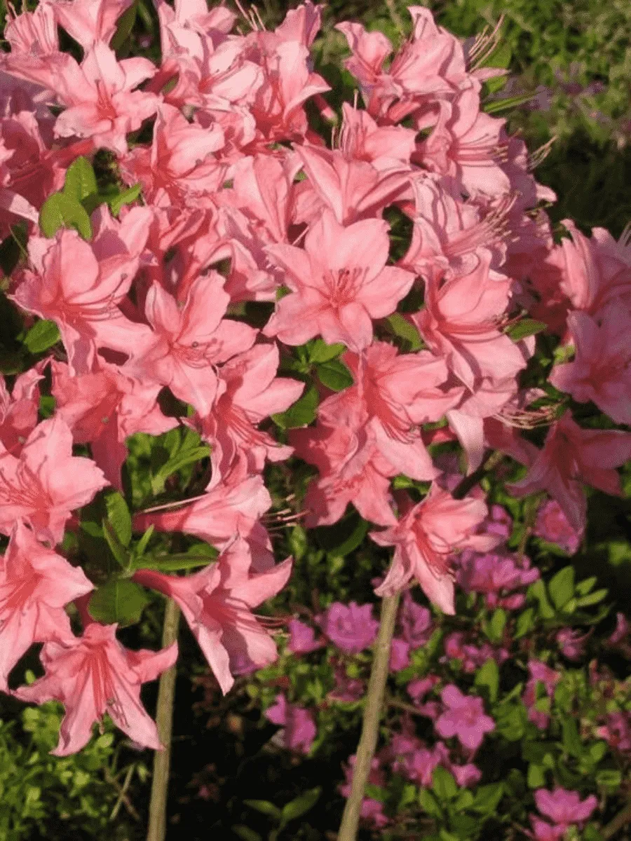 Азалия крупноцветковая *Jolie Madame* пленяет взор изысканным очарованием своего цветения и утончённой красотой листвы. Это вечнозелёный кустарник высотой до полутора метров, обладающий густой кроной и элегантной формой ветвей. Листья небольшие, овальные, тёмно-зелёные сверху и слегка серебристые снизу, гладко блестящие, словно покрытые тонким слоем воска. Цветки крупные, диаметром около восьми сантиметров, собраны в пышные соцветия, распускаются ранней весной, наполняя сад нежностью и ароматом. Лепестки бархатисто-розовые, иногда с лёгким пурпурным оттенком, края волнистые, придающие цветкам особую воздушность и хрупкость. Растёт азалия медленно, предпочитая полутень и влажную плодородную почву, распространена преимущественно в садах умеренного климата Европы и Северной Америки, где её ценят за декоративность и способность создавать атмосферу романтического уюта и гармонии.