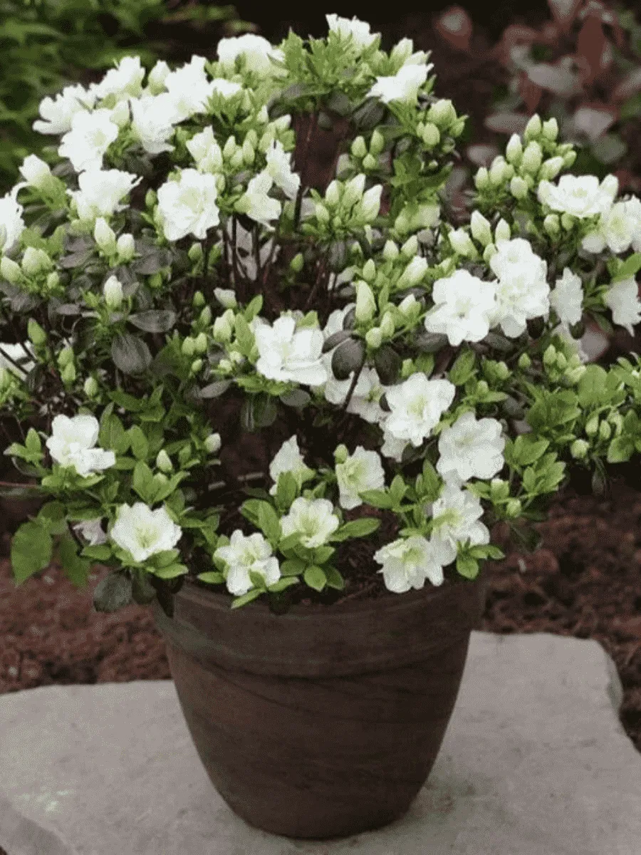 Азалия японская *Schneeperle* пленяет взор нежностью своего облика и изысканностью форм. Это компактный вечнозелёный кустарник высотой до одного метра, обладающий густой кроной и элегантной архитектурой ветвей. Листья небольшие, овально-ланцетные, тёмно-зелёные сверху и слегка серебристые снизу, придают растению благородную строгость и свежесть. Цветёт обильно и продолжительно, покрываясь множеством крупных белоснежных цветков диаметром около пяти сантиметров, словно снежинки, застывшие на ветвях. Бутоны раскрываются постепенно, создавая эффект непрерывности цветения. Растение предпочитает полутень и влажные кислые почвы, широко распространено в садах умеренного климата благодаря своей декоративности и неприхотливости.