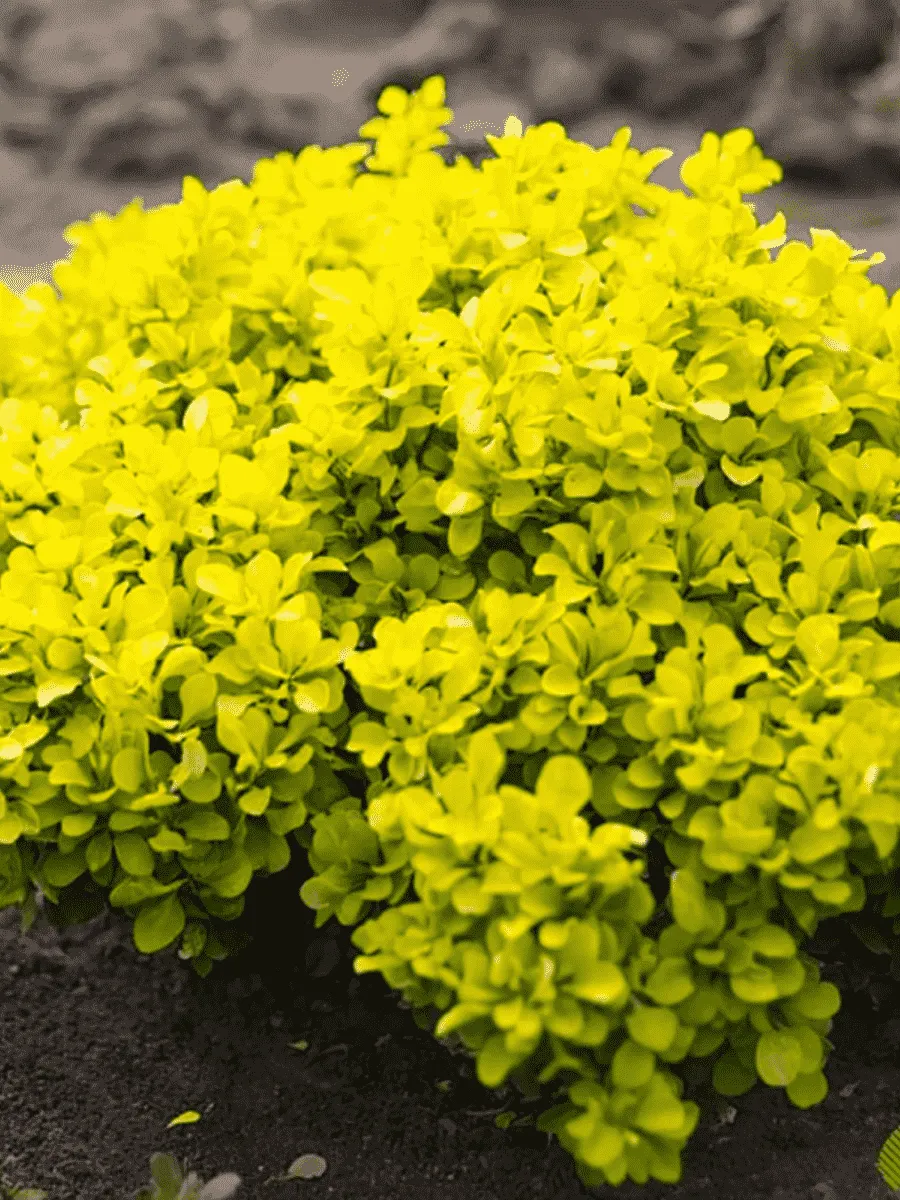 Барбарис Тунберга сорта **Goldalita** представляет собой компактный кустарник высотой до одного метра с густой кроной округлой формы, словно золотистый шар, украшающий садовые композиции. Листья мелкие, овальные, гладко-кожистые, насыщенно-золотисто-жёлтые весной и летом, осенью приобретающие яркие оранжево-красноватые оттенки, создавая эффектную игру красок. Цветки небольшие, жёлтого цвета, собраны в короткие кисти, появляются ранней весной одновременно с распусканием листвы, источают тонкий аромат и привлекают насекомых-опылителей. Растёт медленно, предпочитает солнечные места, хорошо переносит стрижку и формовку кроны, устойчив к городским условиям и зимостойкий. Этот сорт барбариса идеально подходит для бордюров, живых изгородей, рокариев и контейнерного озеленения, добавляя саду изысканность и декоративность круглый год.