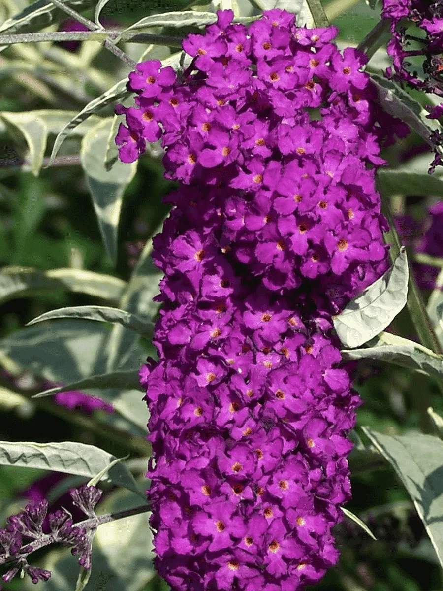 Буддлея Давида сорта *Harlequin* — роскошная кустарниковая красавица, покоряющая сердца садоводов изысканным сочетанием форм и красок. Её густые побеги украшены крупными ланцетными листьями насыщенного зелёного цвета с серебристым отливом снизу, словно покрытыми тонким слоем лунной пыли. Но истинную славу растению приносит пышное цветение: многочисленные метельчатые соцветия, состоящие из множества мелких трубчатых цветков, переливаются оттенками розового, лилового и пурпурного цветов, создавая впечатление живописного калейдоскопа. Цветёт буддлея обильно и продолжительно, начиная с середины лета до поздней осени, привлекая внимание не только людей, но и многочисленных бабочек, кружащихся над её ароматными цветами. Куст быстро растёт, достигая высоты около двух метров, легко адаптируется к различным условиям выращивания и прекрасно переносит обрезку, позволяя формировать компактные формы. Благодаря своей неприхотливости и декоративности, буддлея становится украшением любого сада, наполняя пространство нежностью и ароматом летних дней.