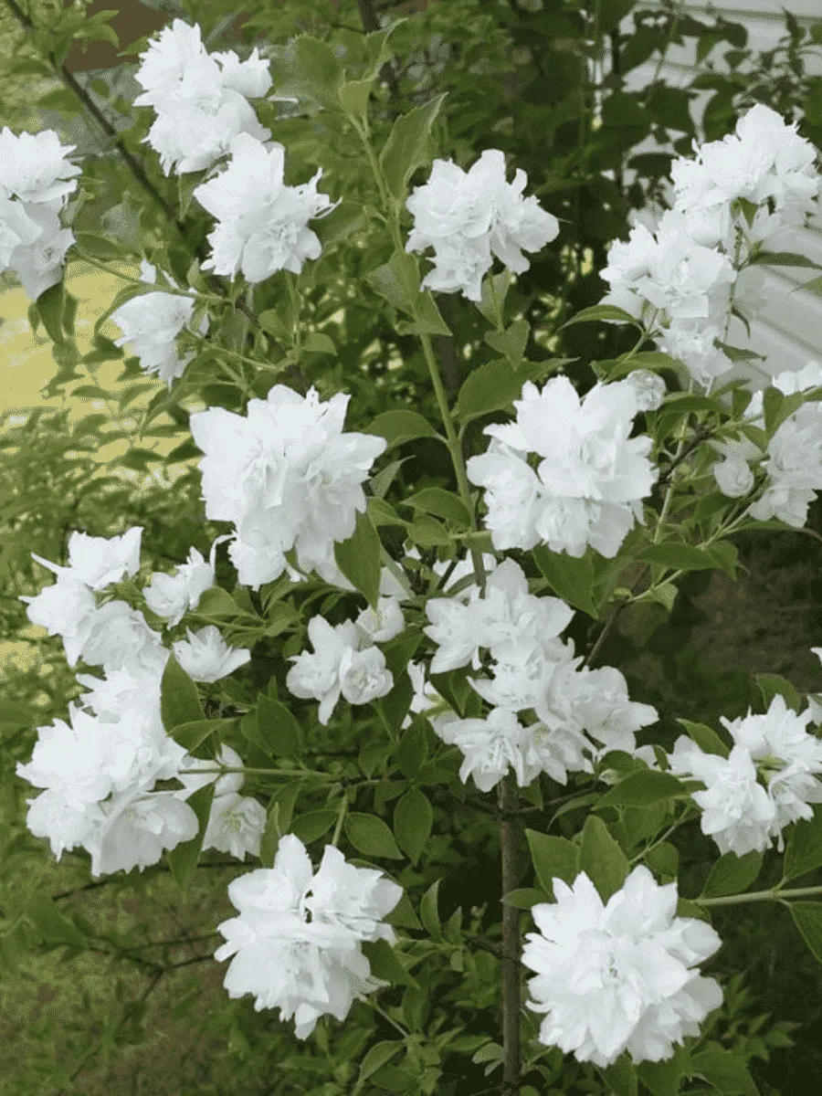 Чубушник венечный сорта *Pompon* представляет собой компактный кустарник высотой до полутора метров с густой кроной, состоящей из прямостоячих ветвей, покрытых тёмно-зелёной листвой овальной формы с гладкой поверхностью и слегка блестящей фактурой. Листья крупные, плотные, насыщенного зелёного цвета, придающие растению благородную строгость и элегантность. Цветёт обильно и продолжительно, начиная с конца мая и вплоть до середины июля, покрываясь многочисленными крупными белыми цветами диаметром около пяти сантиметров, собранными в пышные соцветия, источающие тонкий аромат жасмина. Бутоны раскрываются постепенно, создавая эффект непрерывности цветения, когда одновременно присутствуют распустившиеся цветы и свежие бутоны. Растение отличается устойчивостью к неблагоприятным условиям среды, хорошо переносит городские условия, зимостойко и неприхотливо в уходе, прекрасно подходит для одиночных посадок, живых изгородей и групповых композиций в садах и парках.