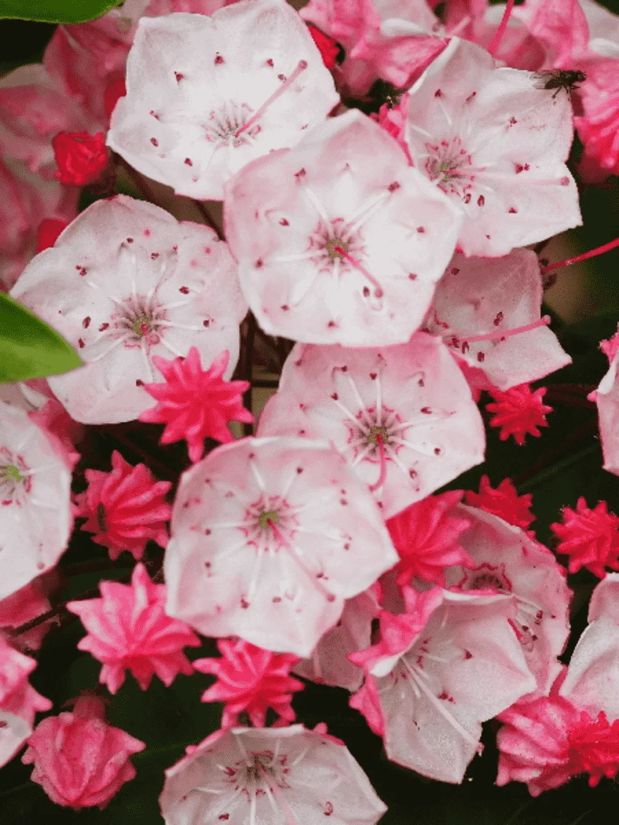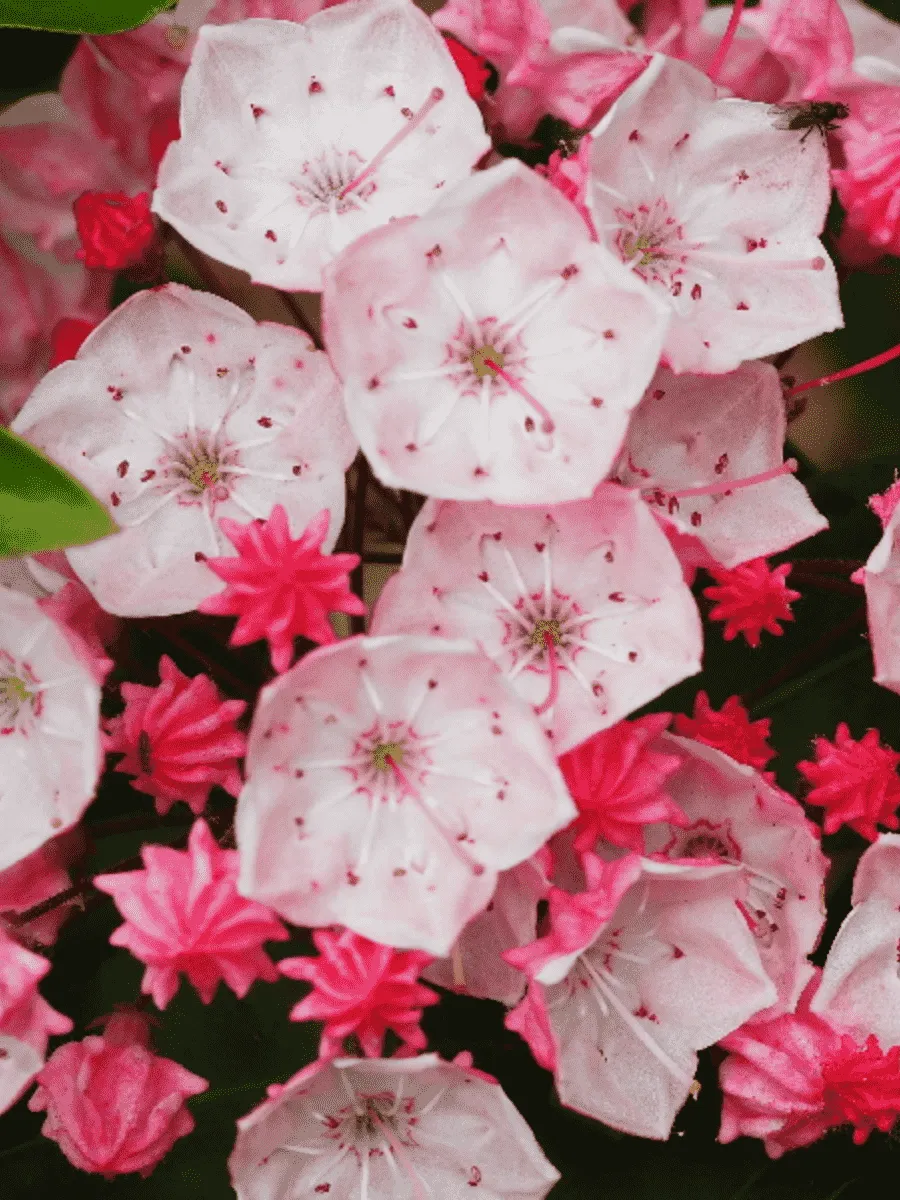 Кальмия широколистная (Kalmia latifolia), известная также как олива вечнозелёная, пленяет взор своей изысканной красотой и благородством облика. Это невысокое дерево или крупный кустарник достигает высоты от двух до десяти метров, обладая густой кроной и стройным стволом, покрытым гладкой серо-коричневой корой. Листья кальмии плотные, кожистые, тёмно-зелёные сверху и слегка светлее снизу, эллиптической формы с острым кончиком, располагаются супротивно вдоль ветвей, создавая эффектную густоту кроны даже зимой благодаря своему вечнозелёному характеру. Но истинной жемчужиной растения является её великолепие цветения: весной и летом оно покрывается многочисленными крупными соцветиями, состоящими из множества колокольчатых цветков нежно-розового цвета с пурпурными пятнышками внутри, источающими тонкий аромат и привлекающих внимание своим нежным очарованием. Растёт кальмия медленно, предпочитая влажные кислые почвы и полутень лесов Северной Америки, где она образует живописные заросли, украшая собой тенистые уголки природы.