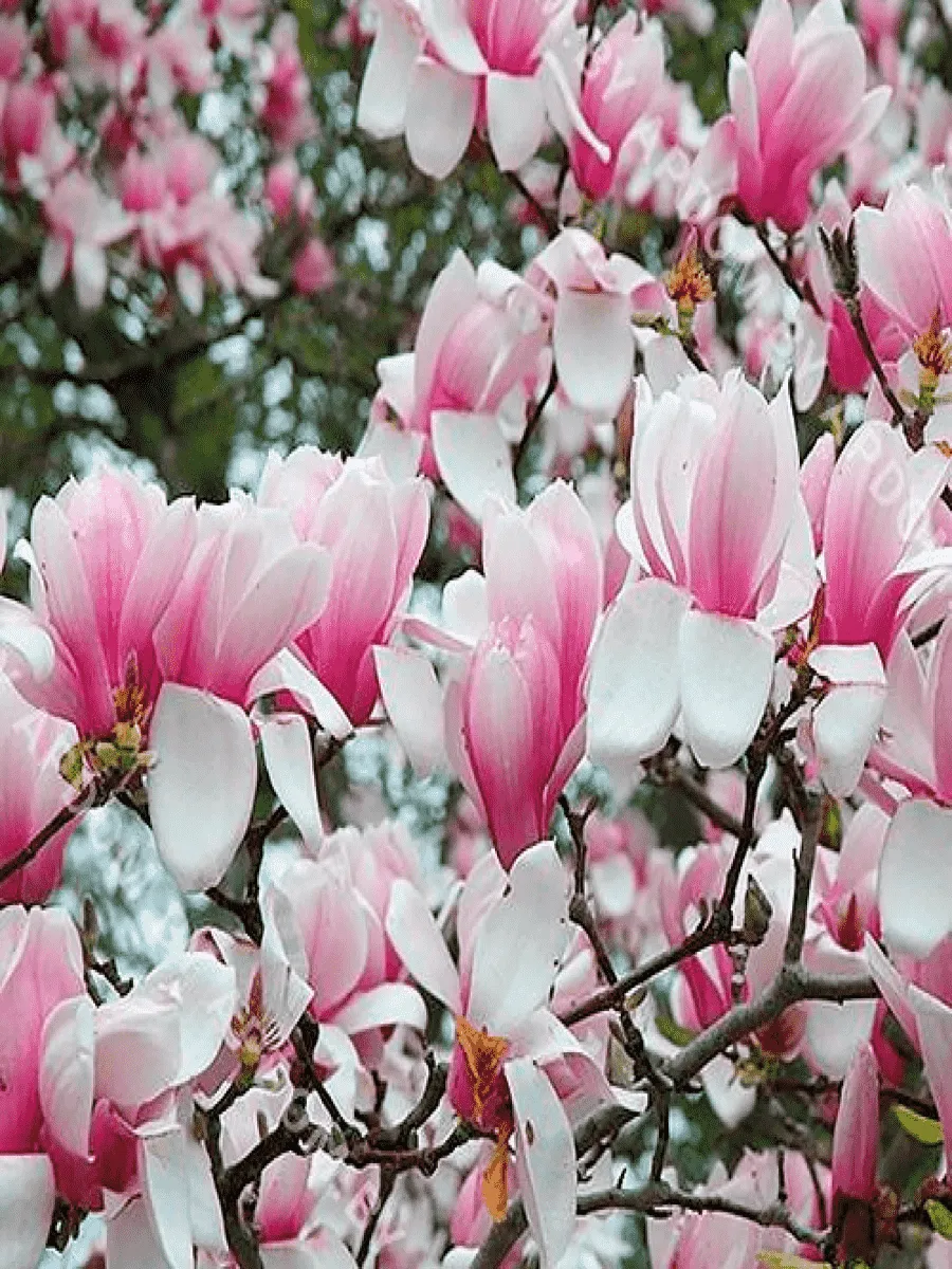 Магнолия суланжа Verbanica – дерево или крупный кустарник с овальной кроной и бело-розовыми цветами 3-5м. высоты. Они появляются позже, чем у похожих сортов, спасаясь тем самым от заморозка. До распускания лиственных почек на ветвях открываются чашечки цветов. Лепестки белые от краёв, с розовой или фиолетово-розовой основой. Тон сгущается на выпуклой поверхности чашечки и остается почти белым внутри. Крона приземистая, составлена из кожистых листьев тёмной окраски.