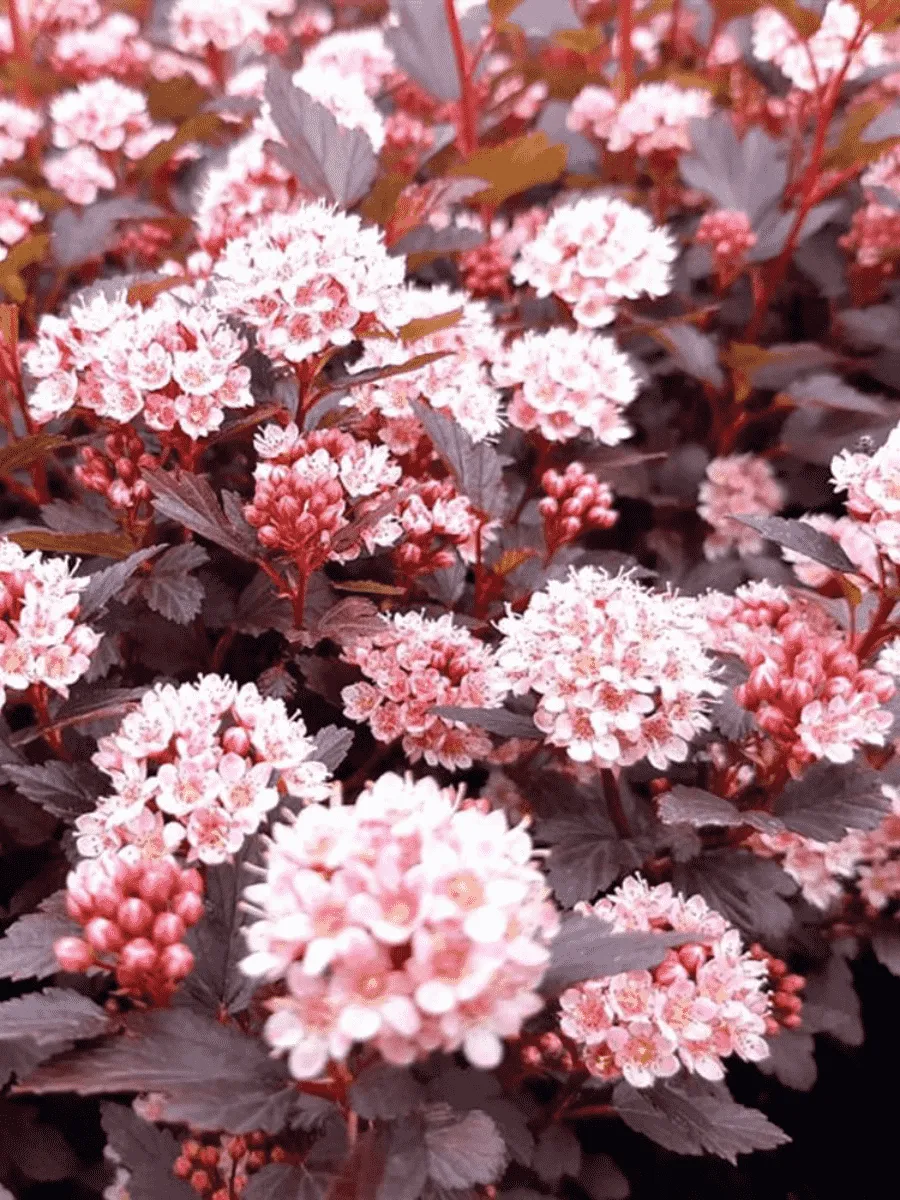 Пузыреплодник калинолистный сорта *Little Joker* представляет собой компактный декоративный кустарник высотой до одного метра с густой кроной и живописной формой кроны. Его листья имеют характерную волнистость края и необычную пёструю окраску: весной и летом они окрашены в яркие оттенки розового, красного и пурпурного цветов, создавая эффект переливающейся палитры красок, осенью же приобретают насыщенные бронзово-красные тона, добавляя саду особую осеннюю прелесть. Цветки мелкие, белые или кремовые, собраны в небольшие щитковидные соцветия, появляются в июне-июле и украшают растение нежностью своего цветения. Кустарник отличается неприхотливостью, устойчивостью к неблагоприятным условиям среды и способностью сохранять свою привлекательность даже в условиях городской среды. Благодаря своей красоте и универсальности, пузыреплодник *Little Joker* широко используется в ландшафтном дизайне для создания живых изгородей, бордюров и одиночных посадок, привнося в садовую композицию яркость и оригинальность.