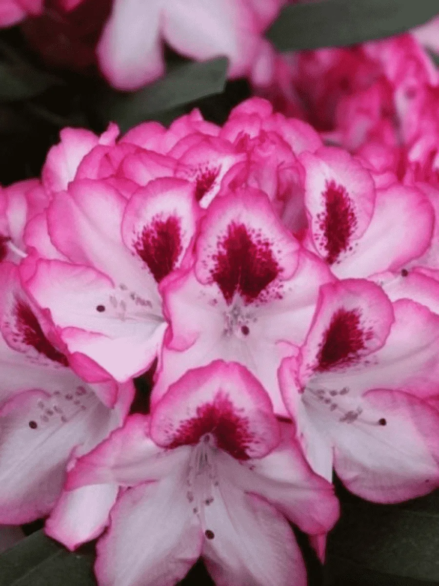 Рододендрон якушиманский сорта *Hachmann's Charmant* представляет собой компактный вечнозелёный кустарник высотой до одного метра с густой кроной и элегантной формой ветвей. Листья небольшие, кожистые, тёмно-зелёные сверху и слегка серебристые снизу, овально-ланцетные, блестящие, придающие растению благородную строгость облика даже вне периода цветения. Цветки крупные, широко раскрытые, собраны в пышные зонтичные соцветия, распускаются весной, окрашены нежнейшими оттенками розового цвета с лёгким пурпурным отливом и едва заметными жёлтыми пятнышками внутри венчика, создавая впечатление изысканной пастельной палитры. Растёт медленно, предпочитает полутень и влажные кислые почвы, устойчив к холоду и хорошо переносит суровые зимы средней полосы России, украшая сады своей утончённой красотой долгие годы.