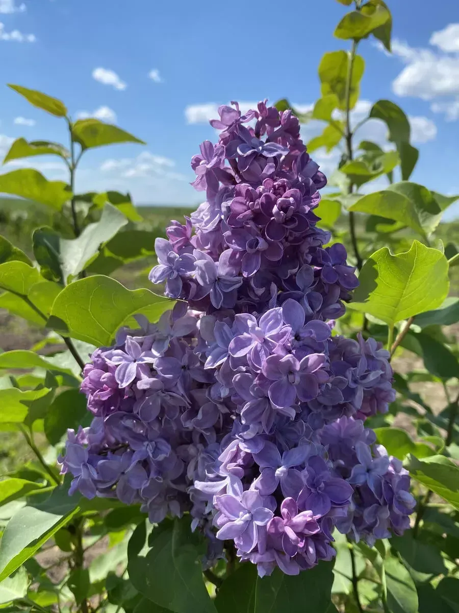 Сирень обыкновенная 'Андрюша Громов' — роскошная садовая форма, пленяющая взор пышностью цветения и благородством облика. Это раскидистый кустарник высотой до трёх метров, обладающий густой кроной и стройными прямостоячими побегами серо-коричневого оттенка. Листья крупные, сердцевидные, насыщенно-зелёной окраски, слегка блестящие, придающие растению особую декоративность даже вне периода цветения. Но истинную славу сирени приносит её великолепие во время цветения: весной куст покрывается крупными ароматными соцветиями-метёлками длиной около двадцати сантиметров, состоящими из множества мелких цветков нежнейшего лавандово-голубого цвета с едва уловимым лиловым оттенком. Цветение продолжительное, длится две-три недели, наполняя воздух тонким сладковатым ароматом, который привлекает пчёл и восхищает садоводов. Растёт быстро, предпочитает солнечные места и плодородные почвы, устойчива к морозам и засухе, легко размножается черенкованием и прививкой. Прекрасна в одиночных посадках, живых изгородях и композициях с хвойниками, подчёркивая своей изысканной красотой гармонию природного ландшафта.