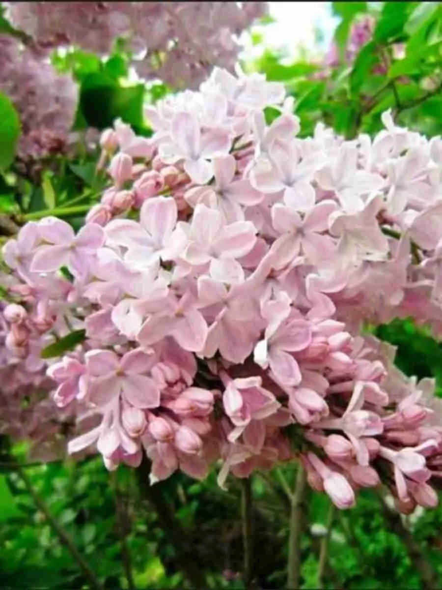 Сирень обыкновенная **Тишина** — элегантная садовая красавица, покоряющая сердца нежностью цветения и тонким ароматом. Это компактный кустарник высотой до двух метров, обладающий густой кроной и стройными прямыми побегами серовато-коричневого оттенка. Листья крупные, сердцевидные, насыщенно-зелёные, слегка блестящие сверху и матовые снизу, придающие растению благородную строгость облика. Цветки собраны в пышные пирамидальные соцветия длиной около двадцати сантиметров, состоящие из множества мелких цветков нежно-фиолетового цвета с едва уловимым розовым оттенком, словно тихий шепот весеннего вечера. Бутоны раскрываются постепенно, продлевая период декоративности куста почти месяц. Растёт медленно, предпочитает солнечные места и плодородные почвы, устойчива к морозам и засухе, широко используется в ландшафтном дизайне парков и садов, создавая атмосферу спокойствия и умиротворённости.