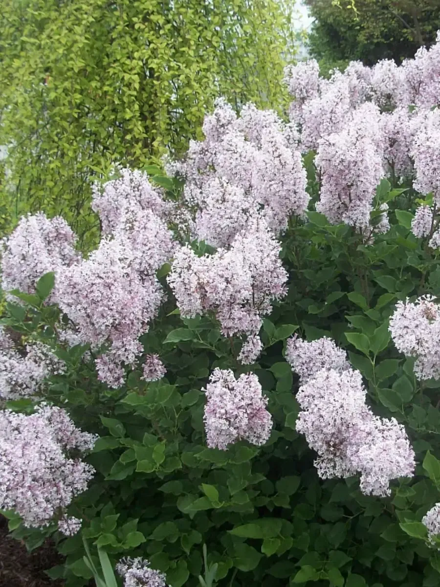 Сирень раскидистая сорта *Miss Kim* представляет собой компактную декоративную кустарниковую форму высотой до двух метров с живописной широкой кроной, состоящей из множества тонких гибких ветвей, устремлённых вверх и слегка склоняющихся книзу, создавая впечатление лёгкого воздушного облачка. Листья овально-яйцевидные, ярко-зелёные летом, осенью приобретают нежные золотисто-жёлтые оттенки, придавая растению особую привлекательность перед наступлением холодов. Цветёт обильно и продолжительно, начиная с конца мая и вплоть до середины июня, покрываясь множеством мелких ароматных цветков нежно-фиолетового оттенка, собранных в рыхлые пирамидальные соцветия длиной около десяти сантиметров. Благодаря своей неприхотливости, устойчивости к болезням и зимостойкости этот сорт прекрасно подходит для выращивания в умеренном климате средней полосы России, украшая сады и парки своим утончённым обликом и чарующим ароматом.