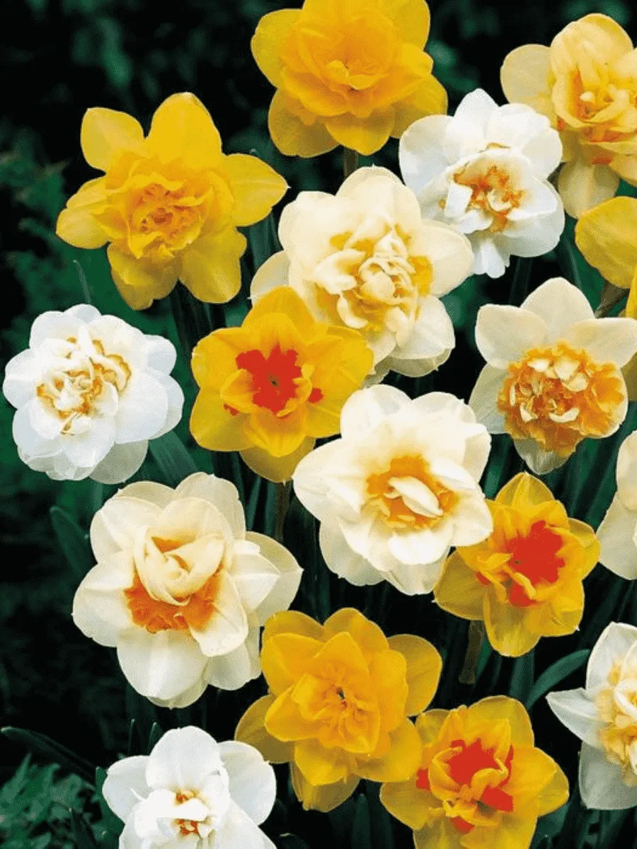 Нарцисс махровый Микс — изысканное растение семейства амариллисовых, покоряющее сердца садоводов нежностью лепестков и утончённой красотой цветения. Листья длинные, узколинейные, насыщенно-зелёные, слегка блестящие, придающие растению элегантность и свежесть облика. Цветки крупные, пышные, собраны в очаровательные соцветия, поражают разнообразием оттенков от белоснежного до нежно-кремового и золотисто-жёлтого цветов. Лепестки многочисленные, волнистые, образуют роскошную бахрому вокруг сердцевины цветка, создавая впечатление воздушности и лёгкости. Высота растений варьируется от 35 до 45 см, позволяя нарциссу гармонично вписываться в любую садовую композицию. Период цветения начинается ранней весной, когда природа ещё только просыпается после зимней спячки, наполняя воздух тонким ароматом и даря ощущение приближающегося тепла. Предпочитает солнечные места и плодородные почвы, легко размножается луковицами, быстро формируя живописные группы и радуя глаз своей неповторимой прелестью долгие годы.