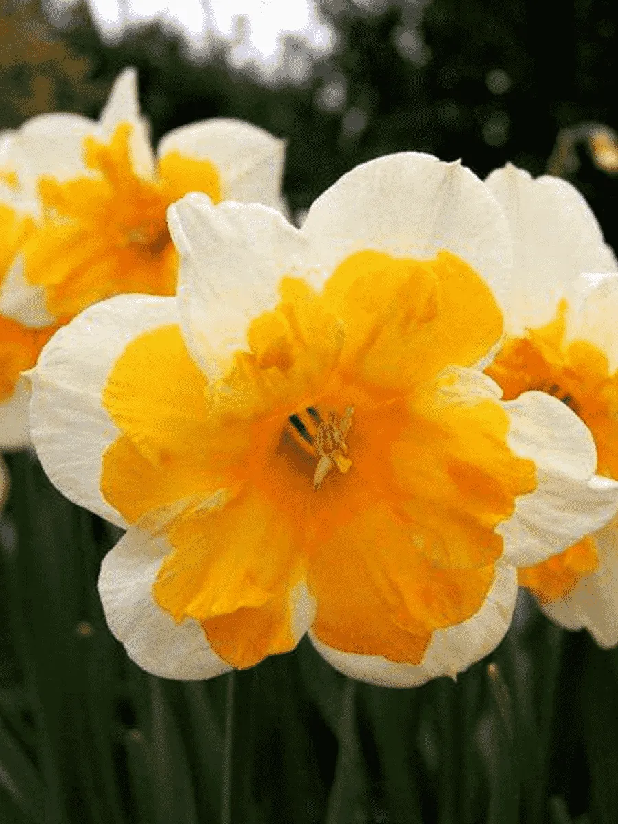 Нарцисс Orangery пленяет взор изысканным сочетанием нежности и яркости, воплощённым в элегантной форме цветка и насыщенной палитре оттенков. Листья узколинейные, гладкие, ярко-зелёные, слегка блестящие, образуют компактную розетку, подчёркивая стройность стебля высотой до 45 см. Цветки крупные, одиночные, располагаются на верхушке прямостоячего цветоноса, раскрываясь во всей красе ранней весной. Лепестки венчика окрашены в чистый белый тон, контрастируя с крупной оранжевой коронкой, придающей нарциссу особую декоративность и очарование. Коронка глубокая, трубчатая, украшена волнистым краем, словно искусная кружевная кайма. Растёт преимущественно на солнечных участках, предпочитая плодородные почвы, легко размножается луковицами, формируя живописные группы и создавая яркие акценты в весеннем саду.