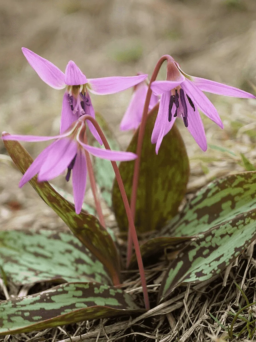 Эритрониум Денс-Канис, известный также как кандык собачий зуб, пленяет взор нежностью весеннего цветения и утончённостью форм. Это многолетнее травянистое растение семейства лилейных отличается элегантной простотой облика: два широких, продолговатых листа тёмно-зелёного цвета украшены серебристо-серым мраморным узором, словно драгоценная парча, лежащая на лесной подстилке. Из середины розетки поднимается тонкий стебель высотой до тридцати сантиметров, увенчанный крупным колокольчатым цветком нежно-розового оттенка, переходящего в белый ближе к центру лепестков. Цветки распускаются ранней весной, когда лес ещё погружён в сон зимнего покоя, наполняя воздух тонким ароматом свежести и чистоты. Корневище клубнеобразное, плотное, напоминает формой небольшой собачий зуб, давший название растению. Кандык предпочитает тенистые места хвойных лесов, влажную плодородную почву и встречается преимущественно в горных районах Европы и Кавказа, радуя глаз редкими вспышками красоты среди серых оттенков апрельского леса.