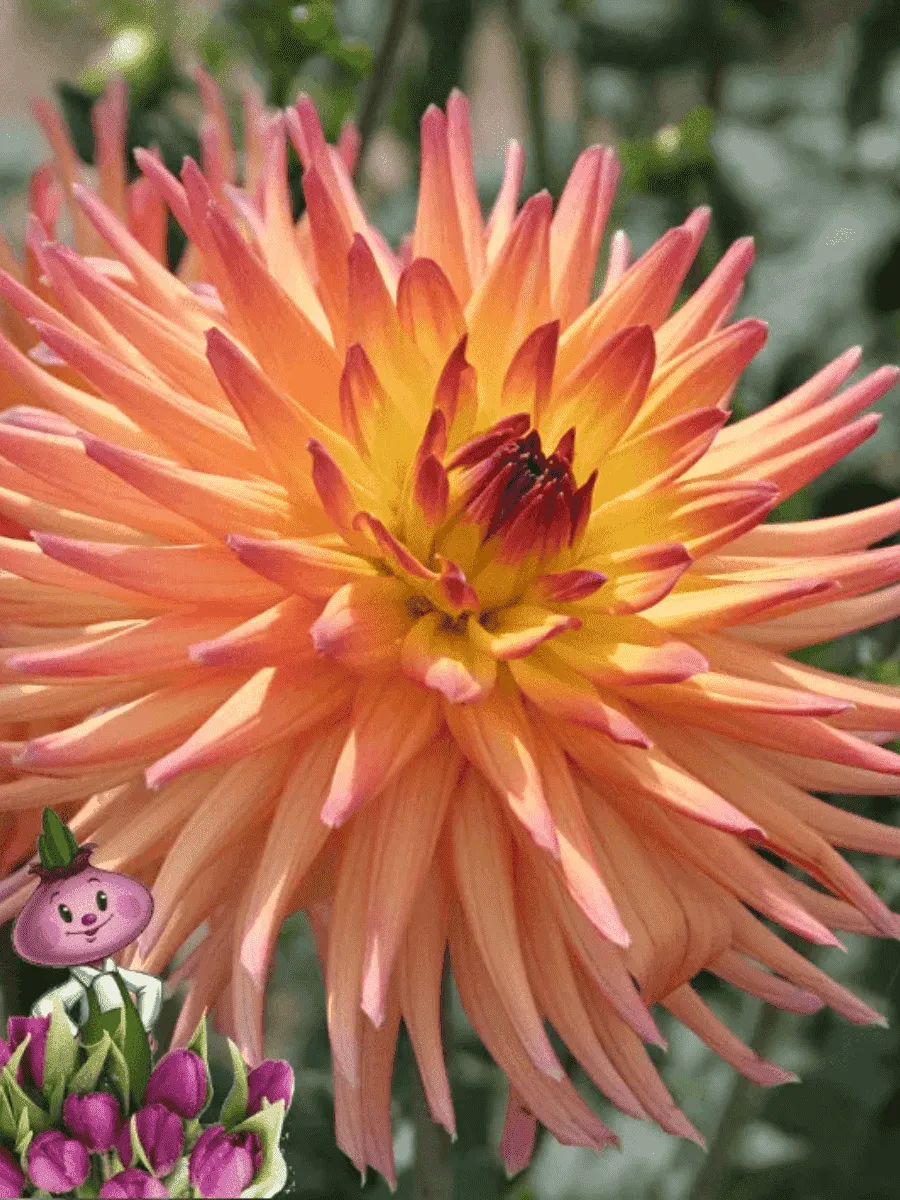 Георгина сорта *Icarus* пленяет взор роскошью крупных махровых соцветий насыщенного оранжево-красного цвета, словно раскалённые угли, горящие среди зелёной листвы. Листья её рассечены глубоко, имеют тёмную изумрудную окраску и слегка блестят на солнце, подчёркивая контрастность композиции. Цветки достигают внушительных размеров до 15–20 см в диаметре, состоят из множества лепестков, плотно прилегающих друг к другу, создавая эффект пышности и объёма. Высота куста варьируется от одного до полутора метров, стебли крепкие, прямостоячие, позволяют растению уверенно держаться даже после дождя или ветра. Георгины данного сорта предпочитают солнечные места, хорошо дренированные почвы и умеренный полив, радуют глаз своим великолепием с середины лета вплоть до первых заморозков.
