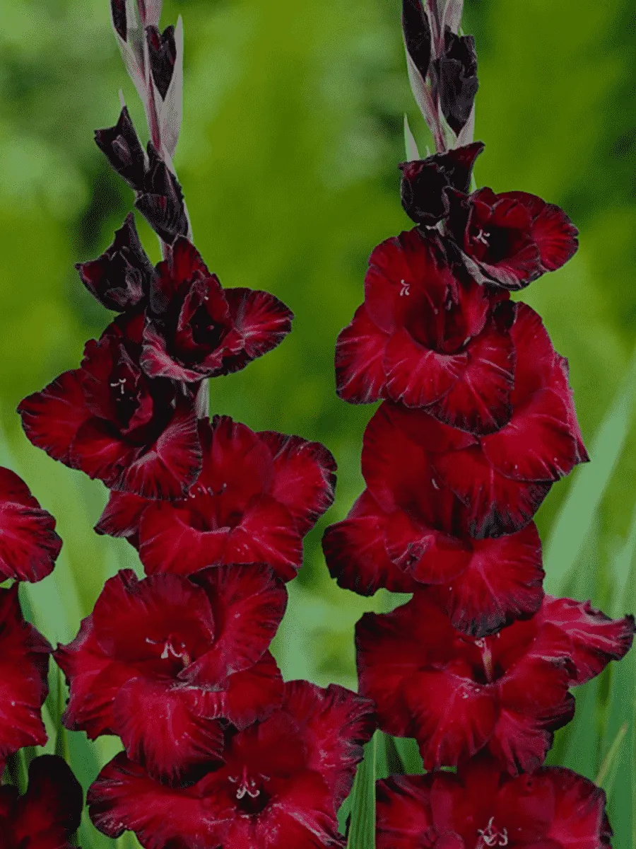 Гладиолус Pescara — элегантная садовая культура, поражающая своей утончённой красотой и благородством форм. Высокий стройный стебель достигает метра высоты, увенчанный роскошной кистью крупных цветков, расположенных каскадом один над другим. Лепестки цветов имеют нежную бархатистую поверхность, переливающуюся оттенками от глубокого пурпурного до насыщенного фиолетового цвета, иногда украшенную едва заметными светлыми штрихами. Листья длинные, узколинейные, ярко-зелёные, слегка серповидно-изогнутые, придают растению особую грациозность и подчёркивают вертикальность композиции. Цветёт обильно и продолжительно, начиная с середины лета и заканчивая первыми осенними заморозками. Предпочитает солнечные места и плодородные почвы, легко размножается клубнелуковицами, ежегодно формирующимися у основания материнского растения. Этот гладиолус станет украшением любого сада, привнося в ландшафт нотки изысканности и аристократизма.