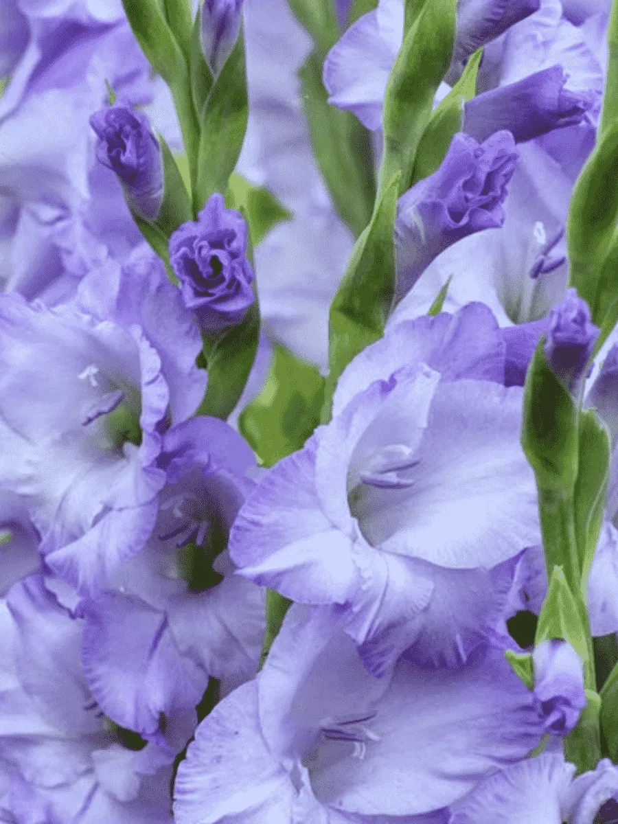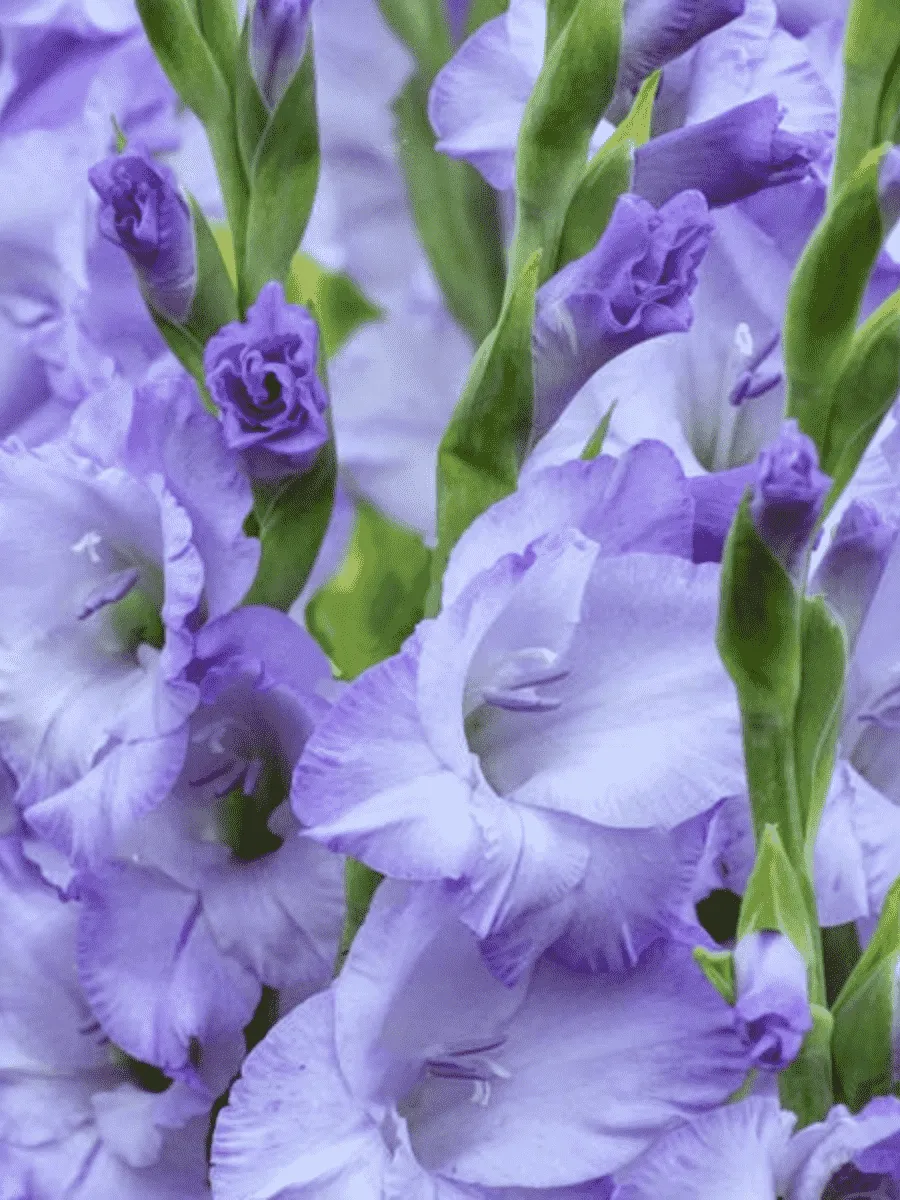 Гладиолус Sweet Blue очаровывает своей утончённой красотой и благородством форм. Высокий стройный стебель достигает метра высоты, увенчанный роскошной кистью крупных цветков, раскрывающихся постепенно снизу вверх. Лепестки нежнейшего голубого оттенка переливаются лёгким серебристым отливом, создавая впечатление воздушной дымки, окутывающей соцветие. Листья узколинейные, длинные и острые, словно клинки мечей, придают растению особую элегантность и строгость силуэта. Цветёт гладиолус продолжительно, радуя глаз своими изысканными цветами до позднего лета. Предпочитает солнечные места и плодородную почву, легко размножается клубнелуковицами, ежегодно обновляя свою красоту и даря садоводу возможность вновь насладиться великолепием этой царственной культуры.