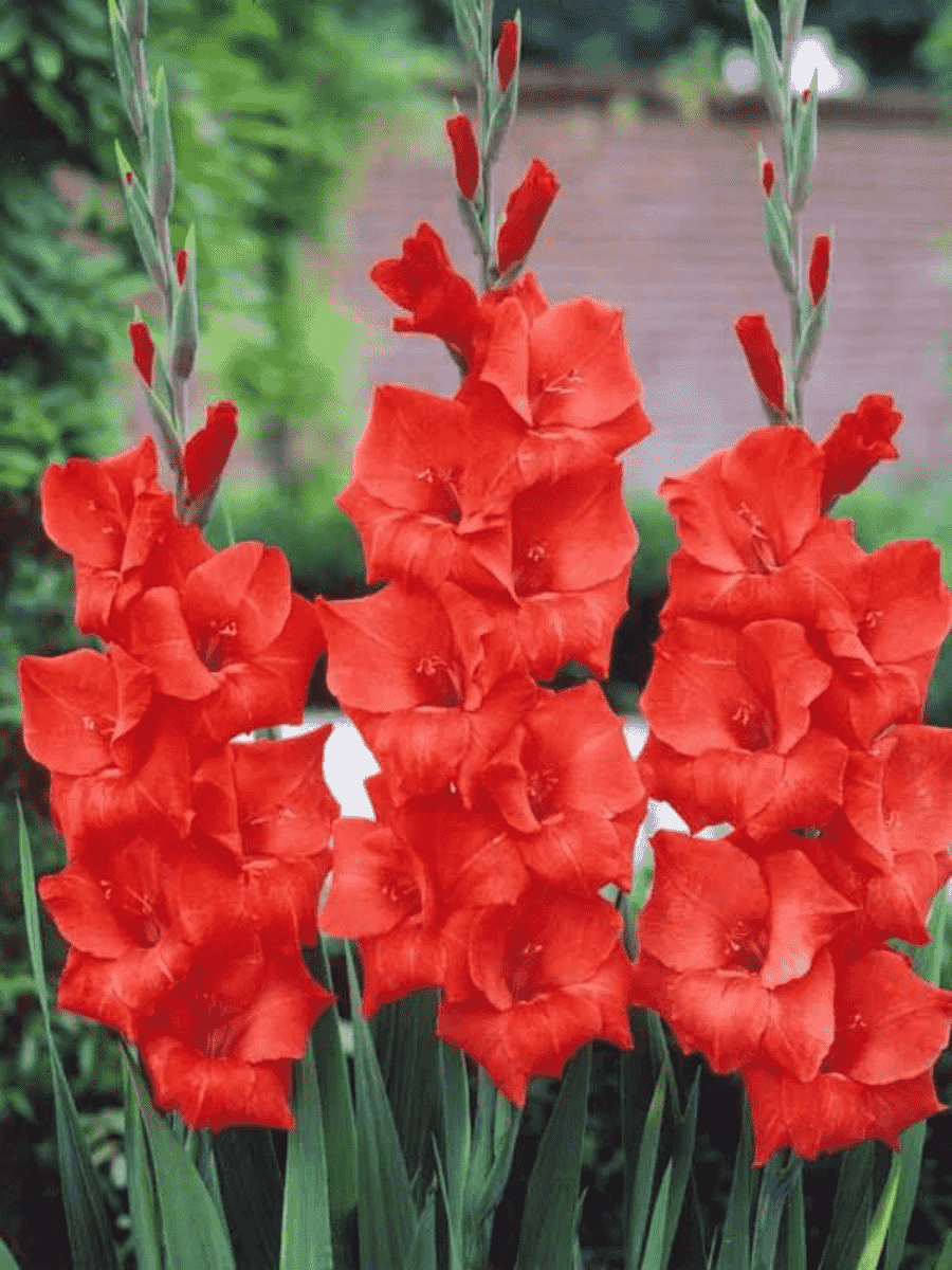 Гладиолус сорта *Traderhorn* пленяет взор своей величественной красотой и благородством форм. Высокий стройный стебель достигает полутора метров высоты, увенчанный роскошной кистью крупных цветков, расположенных каскадом один над другим. Листья длинные, узколинейные, насыщенно-зелёные, слегка серовато-восковые, придают растению особую элегантность и подчёркивают утончённость облика. Цветки крупные, диаметром около десяти сантиметров, раскрываются постепенно снизу вверх, демонстрируя всю палитру оттенков от нежнейшего кремово-белого до золотисто-жёлтого тона с едва заметными штрихами тёмно-коричневого цвета вдоль лепестков. Сердцевина цветка украшена контрастным бархатистым пятном глубокого шоколадного оттенка, придающим изысканность композиции. Период цветения продолжительный, начинается в конце июля и длится до середины сентября, радуя садоводов великолепием своего декоративного вида. Предпочитает солнечные места с плодородной рыхлой почвой, хорошо дренированной и умеренно увлажнённой. Прекрасно смотрится в одиночных посадках, миксбордерах и срезке, где демонстрирует свою неповторимую грациозную красоту.