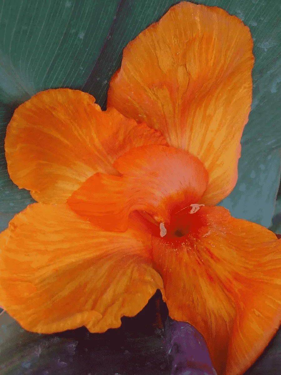 Канна гибридная *Liberty* пленяет взор роскошной декоративностью и экзотическим обликом. Это многолетнее травянистое растение достигает высоты от одного до двух метров, обладая мощными прямостоячими стеблями, увенчанными крупными листьями насыщенного зелёного цвета с характерным блеском и слегка волнистыми краями. Листья широкие, овально-ланцетные, расположены очередно вдоль стебля, придавая растению величественный и благородный облик. Цветки канны распускаются в конце лета и радуют глаз вплоть до первых заморозков, формируя крупные яркие соцветия оранжево-красного оттенка, состоящие из крупных воронкообразных цветков с бархатистым оттенком лепестков и контрастирующими жёлтыми тычинками. Растёт быстро, предпочитает солнечные места и плодородную влажную почву, широко используется в ландшафтном дизайне благодаря своей эффектности и неприхотливости.