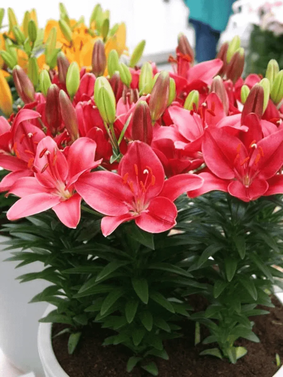 Лилия *Buzzer* пленяет взор изысканным сочетанием нежности и благородства форм. Её стройные стебли достигают высоты до одного метра, увенчанные крупными бутонами, раскрывающимися в роскошные цветки диаметром около десяти сантиметров. Лепестки нежно-розового оттенка плавно переходят в золотисто-жёлтые тона ближе к центру цветка, где выделяются яркие тычинки с тёмной пыльцой. Листья ланцетные, гладкие, насыщенно-зелёного цвета, расположены очередно вдоль всего стебля, подчёркивая элегантность облика растения. Цветёт лилия *Buzzer* продолжительно, радуя глаз с июня по июль, предпочитая солнечные участки и плодородную почву. Этот сорт отличается устойчивостью к болезням и неприхотливостью в уходе, легко адаптируясь к различным климатическим условиям умеренной зоны.