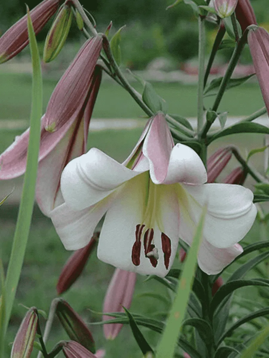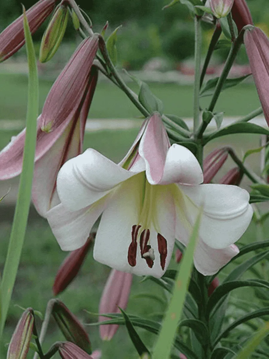 Лилия *Eastern Moon* пленяет взор изысканным сочетанием нежности и благородства форм. Её стройные стебли достигают высоты до полутора метров, увенчанные крупными бутонами, раскрывающимися в роскошные цветки диаметром около двадцати сантиметров. Лепестки цветка окрашены в тёплые оттенки золотисто-жёлтого цвета с лёгким кремовым оттенком, плавно переходящим в насыщенный оранжевый тон ближе к центру венчика. Листья ланцетовидные, гладкие, ярко-зелёные, расположены вдоль всего стебля, создавая гармоничную композицию с цветами. Цветёт лилия продолжительно, начиная с июля и заканчивая августом, наполняя сад тонким ароматом восточных пряностей. Растение предпочитает плодородные почвы и солнечные участки, прекрасно адаптируется к умеренному климату средней полосы России, радуя садоводов своей неприхотливостью и декоративностью долгие годы.