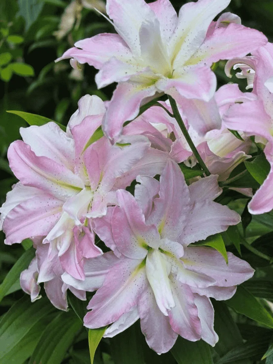 Лилия сорта *Soft Music* пленяет взор нежностью пастельных оттенков и утончённой грацией форм. Её крупные цветки раскрываются широкими чашевидными воронками, лепестки которых слегка отогнуты назад, создавая впечатление лёгкого ветерка, играющего с цветами. Окраска цветков нежно-розовая с едва заметной кремово-белой каймой по краям, центр украшен золотистыми тычинками, придающими особую изысканность композиции. Листья ланцетовидные, тёмно-зелёные, гладко блестящие, расположены вдоль стройного стебля, подчёркивая вертикальную динамику всего растения. Высота лилии достигает около метра, она предпочитает солнечные участки и плодородную почву, демонстрируя свою красоту в июле-августе, когда её аромат наполняет сад тонким сладковатым благоуханием. Этот сорт прекрасно смотрится в одиночных посадках, миксбордерах и срезке, очаровывая своей элегантностью и благородством линий.