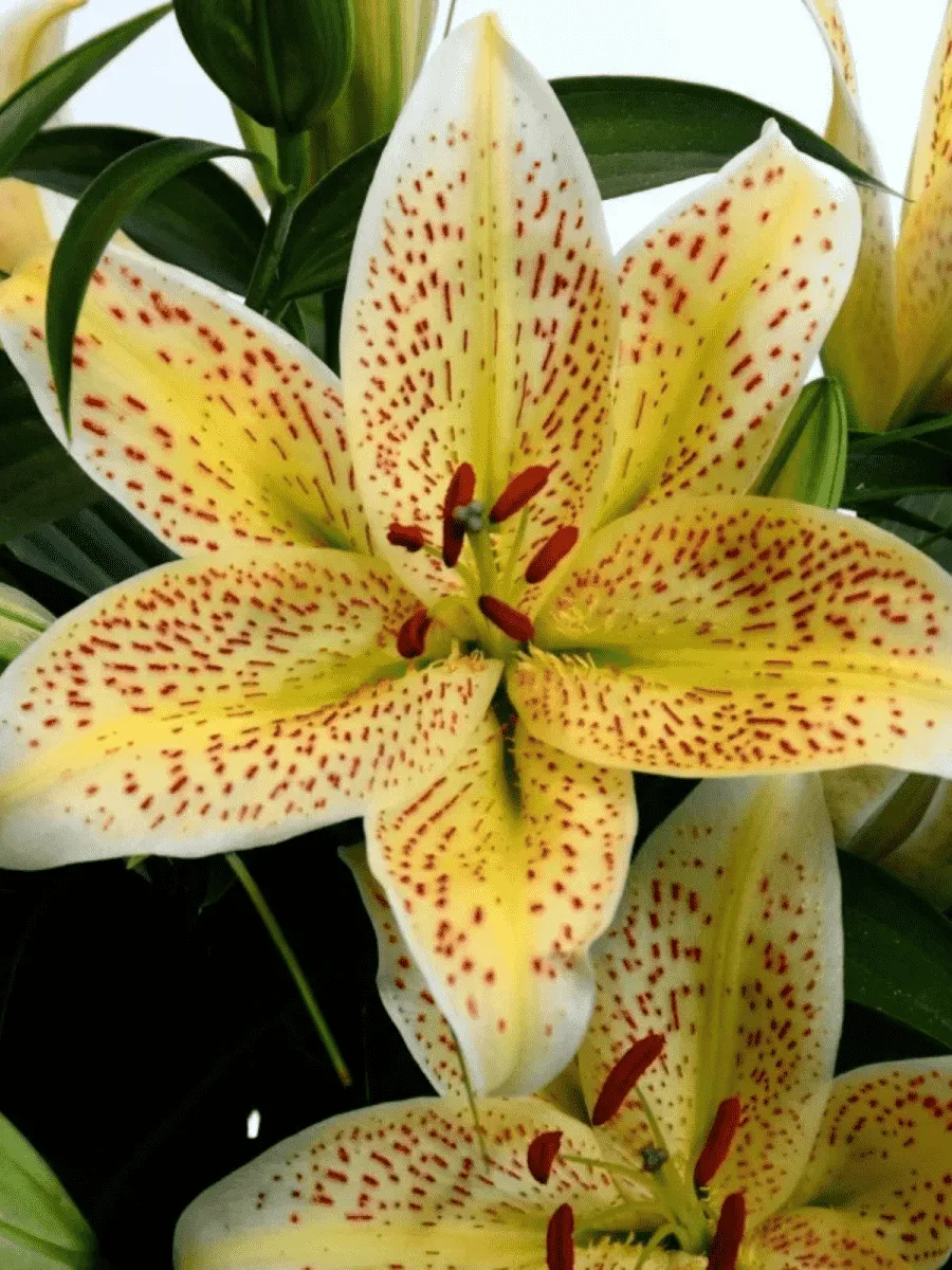 Лилия *Tigermoon* пленяет взор изысканным сочетанием нежности и экзотической роскоши. Её крупные цветки раскрываются широкими чашевидными венчиками, словно расплавленное золото переливается на лепестках, украшенных тонкими пурпурными штрихами и пятнышками, придающими особую пикантность общему облику. Листья узколанцетной формы расположены очередно вдоль стройного стебля, создавая гармоничную зелёную оправу для великолепия цветов. Высота взрослого растения достигает одного метра, позволяя лилии возвышаться над садовыми композициями, привлекая внимание своей грациозностью и величием. Цветёт она продолжительно, начиная с середины лета и радуя глаз до самой осени, распространяя тонкий аромат, который наполняет воздух сладостью восточных пряностей. Предпочитает солнечные места с плодородной почвой, легко адаптируется к различным климатическим условиям, становясь украшением садов и парков, где её красота подчёркивает утончённость природного ландшафта.
