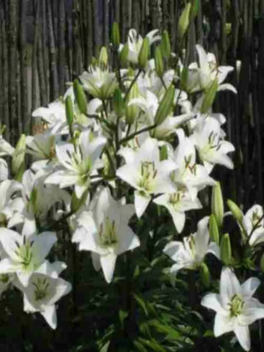Лилия *Yeti* пленяет взор изысканным благородством облика и утончённой гармонией форм. Её стройные прямостоячие стебли достигают высоты до полутора метров, увенчанные крупными воронковидными цветами, обращёнными вверх подобно чашам, наполненным светом. Лепестки нежной кремово-белой окраски украшены едва заметными золотистыми штрихами, придающими цветкам особую воздушность и лёгкость. Листья узколанцетные, тёмно-зелёные, расположены очередно вдоль всего стебля, создавая эффектную зелёную оправу вокруг роскошных цветов. Цветёт лилия *Yeti* продолжительно, начиная с середины лета и радуя глаз своими ароматными бутонами вплоть до конца августа. Растение предпочитает плодородные почвы и солнечные места, прекрасно адаптируется к умеренному климату средней полосы России, где широко используется в ландшафтном дизайне благодаря своей декоративности и неприхотливости.
