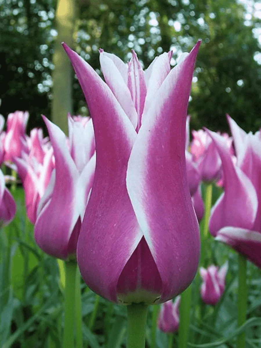 Тюльпан Ballade очаровывает своей элегантностью и благородством форм, представляя собой истинную жемчужину среди садовых растений. Его крепкий стебель высотой около сорока сантиметров увенчан крупными бокаловидными цветами насыщенного красного цвета, словно наполненными солнечным светом и теплом весеннего дня. Лепестки цветка гладкие, слегка закруглённые на концах, создают впечатление мягкости и нежности, контрастируя с чёткостью линий и строгим силуэтом бутона. Листья тюльпана тёмно-зелёные, блестящие, удлинённо-ланцетной формы, подчёркивающие красоту цветков своим глубоким оттенком и гладкой поверхностью. Цветёт растение в апреле-мае, радуя глаз яркими красками и создавая атмосферу праздника весны. Этот сорт прекрасно подходит для выращивания в садах и парках, где он эффектно смотрится как одиночно высаженный экземпляр, так и в составе групповых посадок, украшая ландшафт изысканными штрихами своего великолепия.