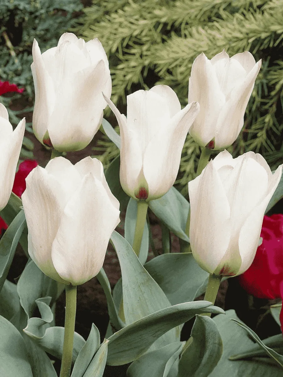 Тюльпан ботанический *Albion Star* пленяет взор своей утончённой красотой и благородством форм. Листья длинные, узколанцетные, насыщенно-зелёного цвета, слегка блестящие, подчёркивающие стройность стебля высотой до полуметра. Цветки крупные, чашевидные, раскрываются широко, демонстрируя нежную белоснежную поверхность лепестков с едва заметной кремово-жёлтой каймой по краям. Сердцевина цветка украшена золотистыми тычинками, придающими особую изысканность композиции. Бутоны появляются ранней весной, когда природа ещё сохраняет зимнюю свежесть, наполняя воздух тонким ароматом весны. Растёт тюльпан компактными группами, предпочитая солнечные участки с плодородной почвой, распространяя своё очарование среди садоводов всего мира.