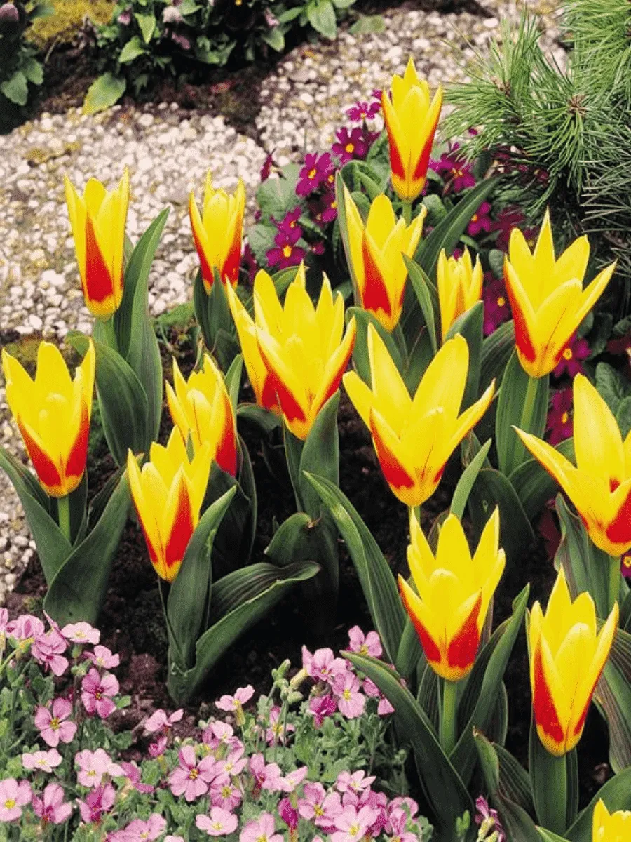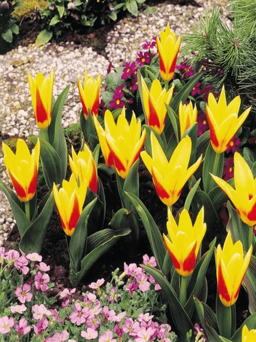 Тюльпан ботанический *Stresa* пленяет взор изысканным обликом и утончённой красотой. Его листья узколанцетной формы, гладко-зелёные, слегка блестящие, словно покрытые тонким слоем воскового блеска, создают гармоничную оправу для нежных цветков. Цветки крупные, чашевидные, раскрываются широко, демонстрируя свою элегантность во всей полноте. Лепестки окрашены в благородный оттенок розово-лилового цвета с едва заметным пурпурным отливом, который усиливается ближе к основанию цветка, придавая особую глубину и очарование. Стебель крепкий, прямой, высотой около тридцати сантиметров, уверенно держит цветок над поверхностью земли. Растёт тюльпан *Stresa* компактными группами, создавая живописные островки среди весеннего сада, радуя глаз своей грациозностью и лёгкостью.